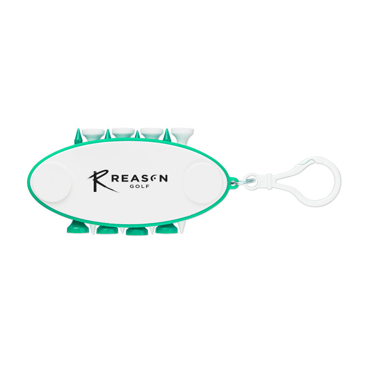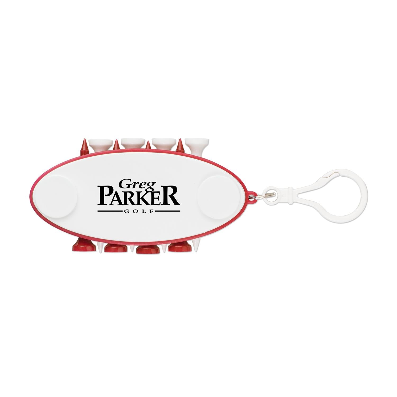 Features 8 tees and 2 ball markers and clip for easy attachment to a golf bag.