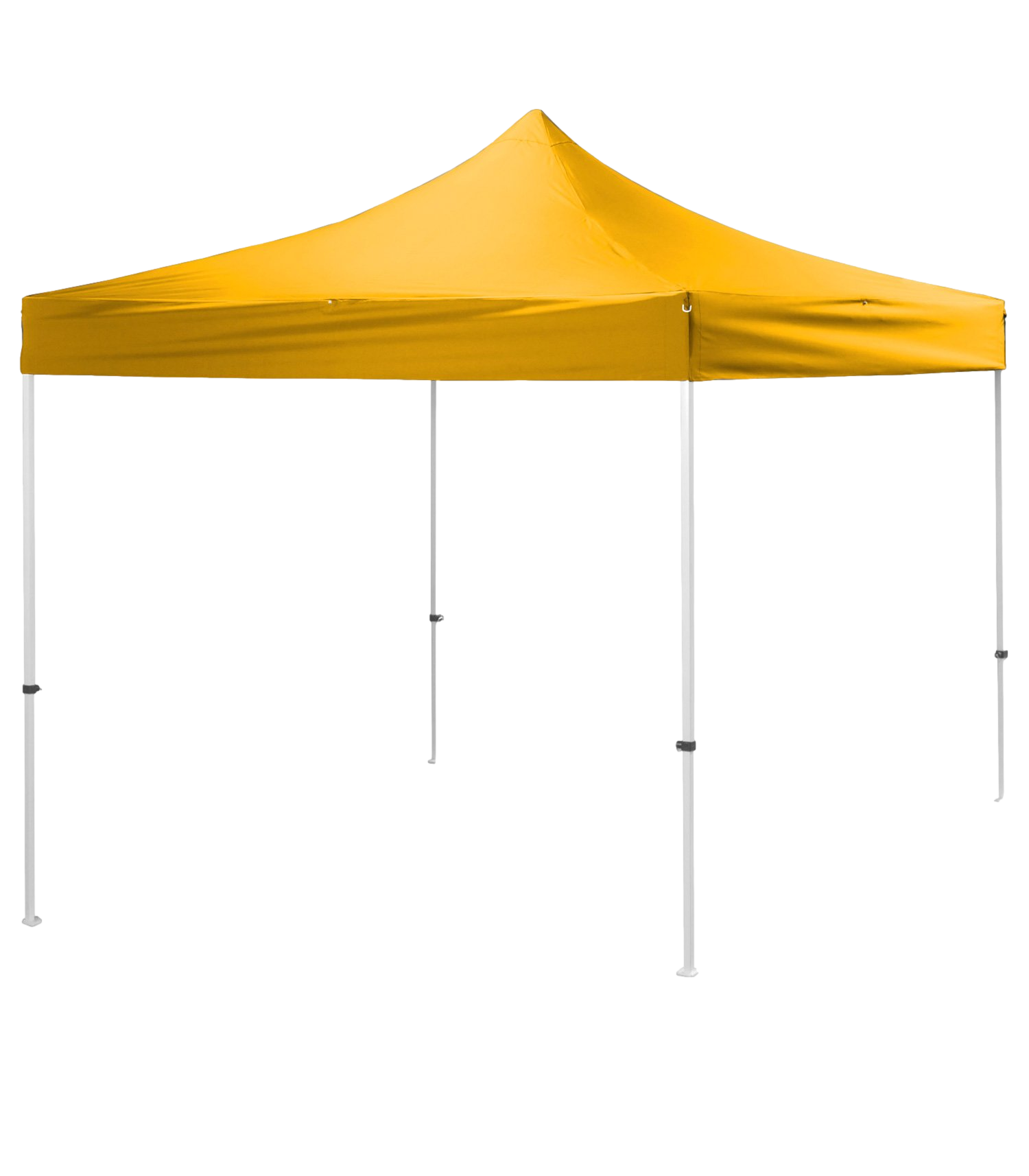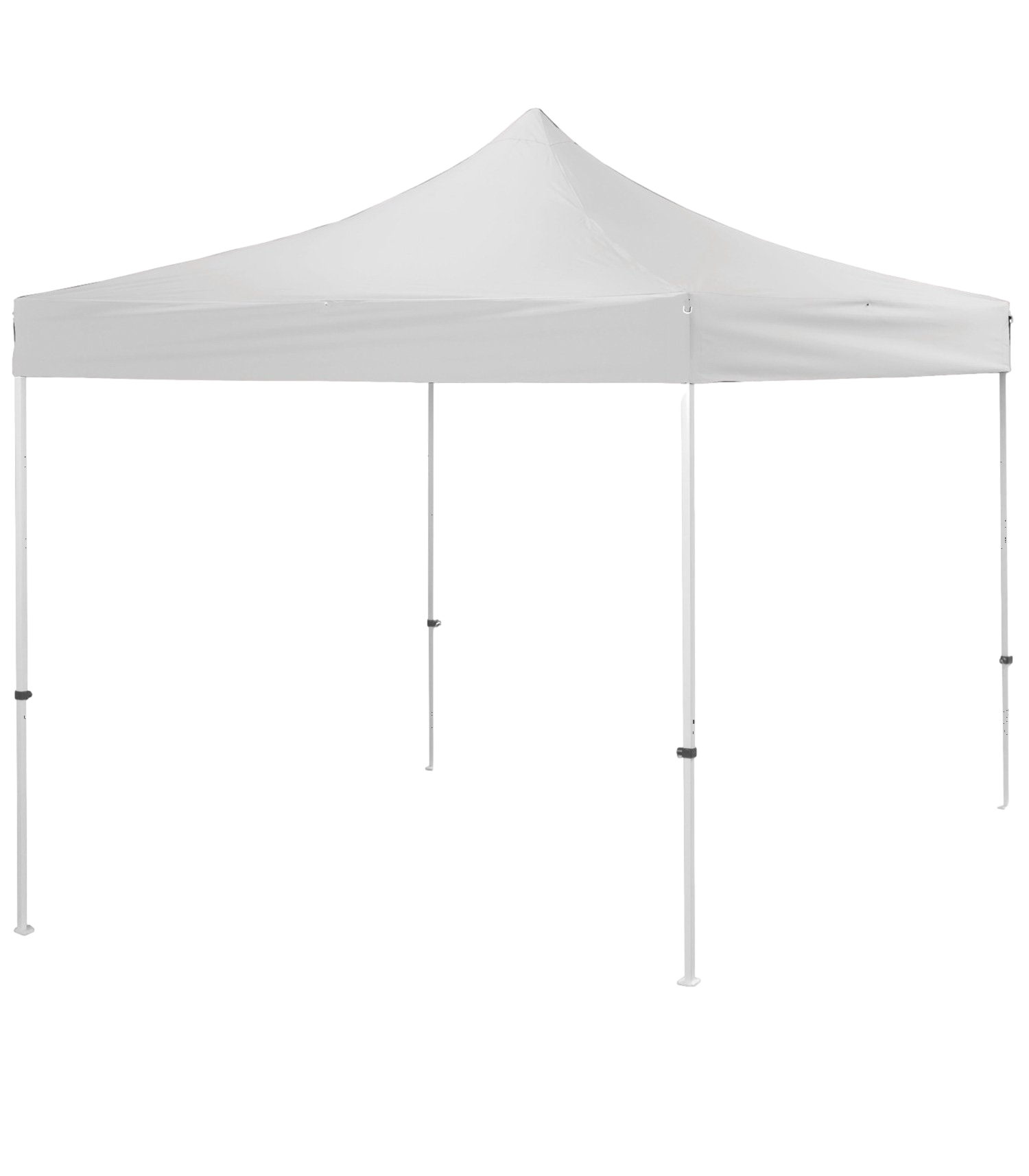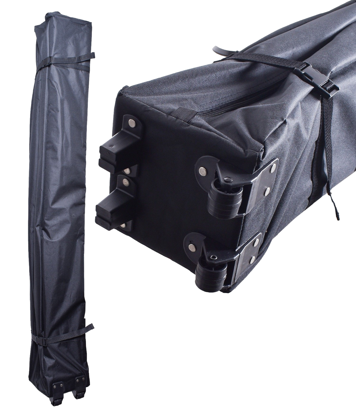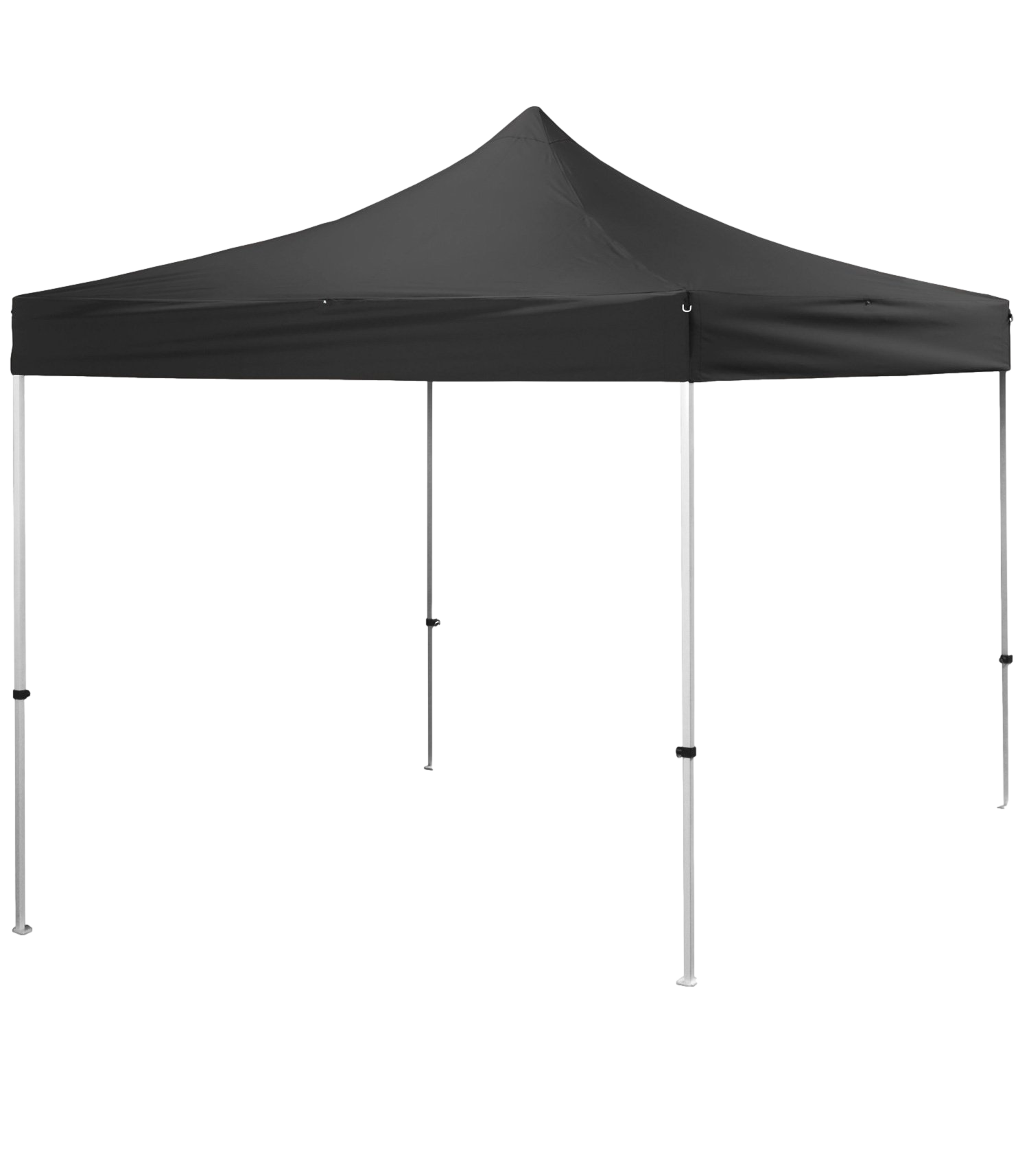 Create an instant oasis from the hot summer sun, or a promotional showplace at an indoor or outdoor event with this easy to set up gazebo! This 10' x 10' structure has a sturdy steel frame and a durable fire-retardant polyester construction that also provides SPF 50+ UV protection. It's all in one piece, so you never have to worry about forgetting a crucial part. Sets up in just minutes. Includes stakes and ropes for added stability and a wheeled black carry case for maximum portability. It's a perfect match for grand openings, product launches, marketing events or home parties.