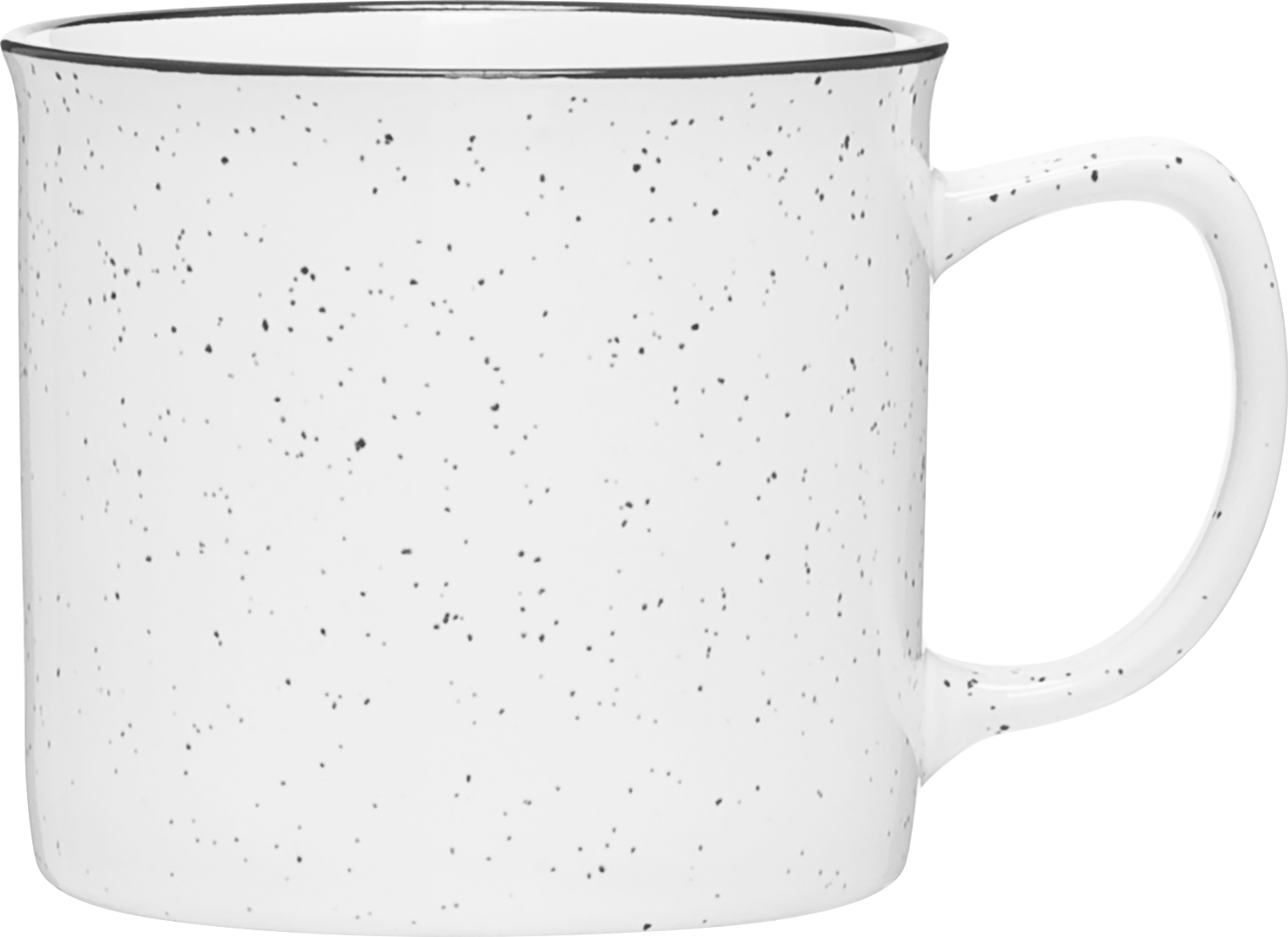 The Cambria 12 oz ceramic mug blends rustic charm with everyday utility. It features a glossy speckled colored exterior, a glossy white interior, and a black rim—giving it a classic camp-style aesthetic. Ideal for coffee, tea, or hot cocoa at home, in the office, or around the fire.