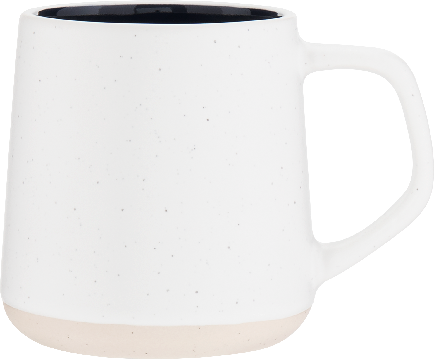 The Woden 12 oz ceramic mug brings a rustic-boho vibe to your daily ritual. Its matte white speckled exterior and unglazed speckled base offer handcrafted charm, while the glossy colored interior adds a subtle pop of contrast. A cozy choice for creative spaces, relaxed mornings, or afternoon breaks. Hand wash recommended. Do not microwave with metallic imprint.