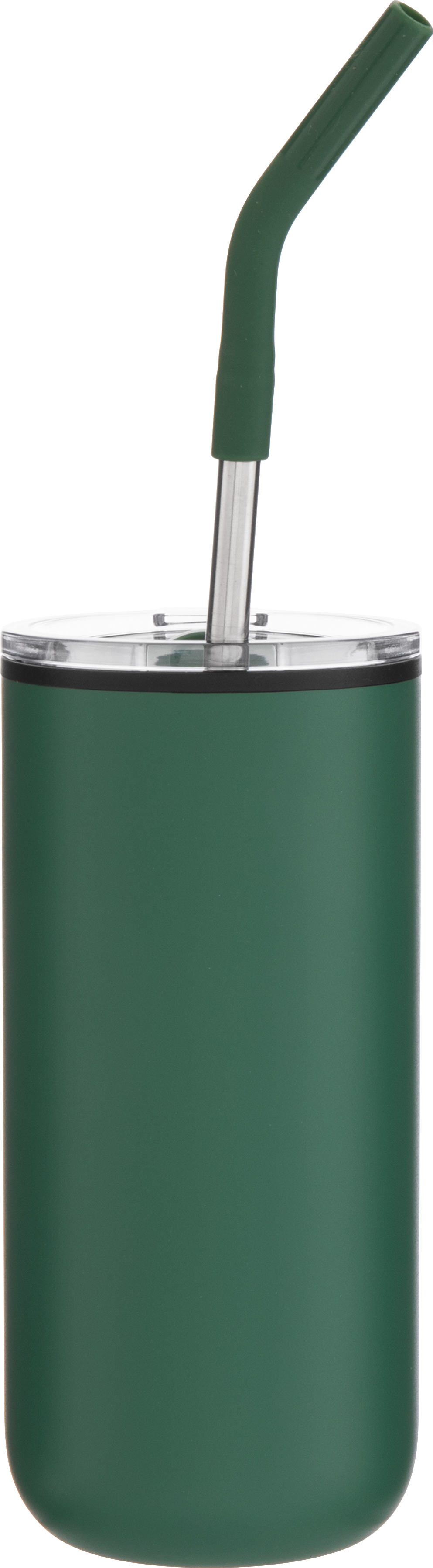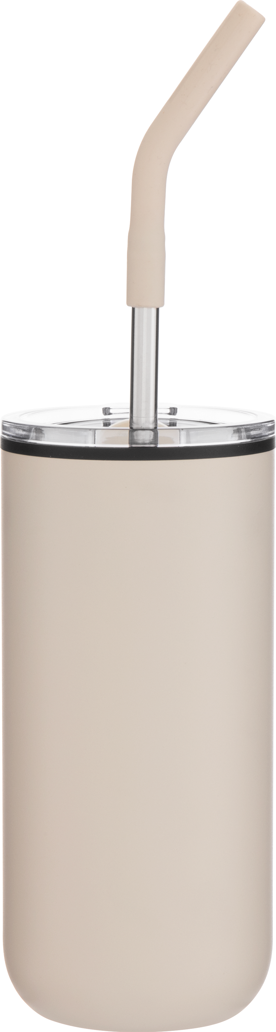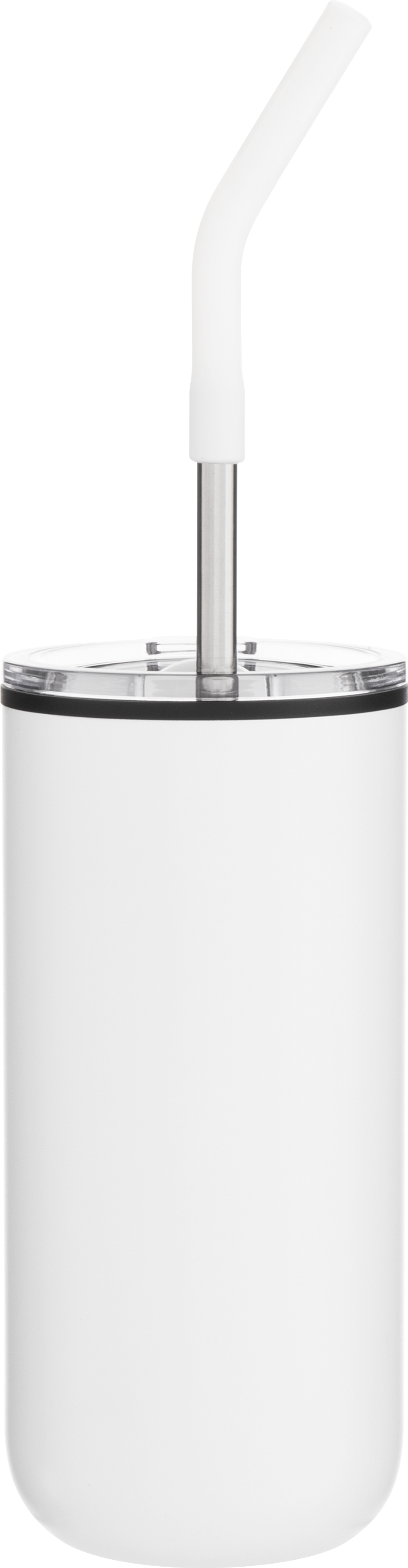 The Ryder 16 oz tumbler is designed for all-day versatility. It features a durable stainless steel outer wall and a plastic inner wall, with a dual-purpose push-on lid for both hot and cold drinks. Use the sliding closure for sipping coffee or the stainless steel straw with silicone guard for cold beverages. Its slim shape fits most cup holders, making it a go-to for commuting or relaxing.