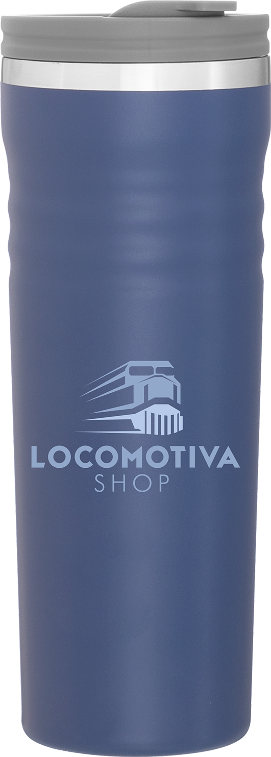The Meridian 16.9 oz tumbler combines premium materials with modern function for everyday use. It features a double wall design with an 18/8 stainless steel inner wall and stainless steel outer wall, paired with vacuum insulation to keep beverages hot or cold for hours. A push-on lid with swivel closure provides spill-resistant sipping and features a debossed compass detail for an added touch of style and adventure. A stainless steel rim and powder coated finish complete the look with durability and grip.
