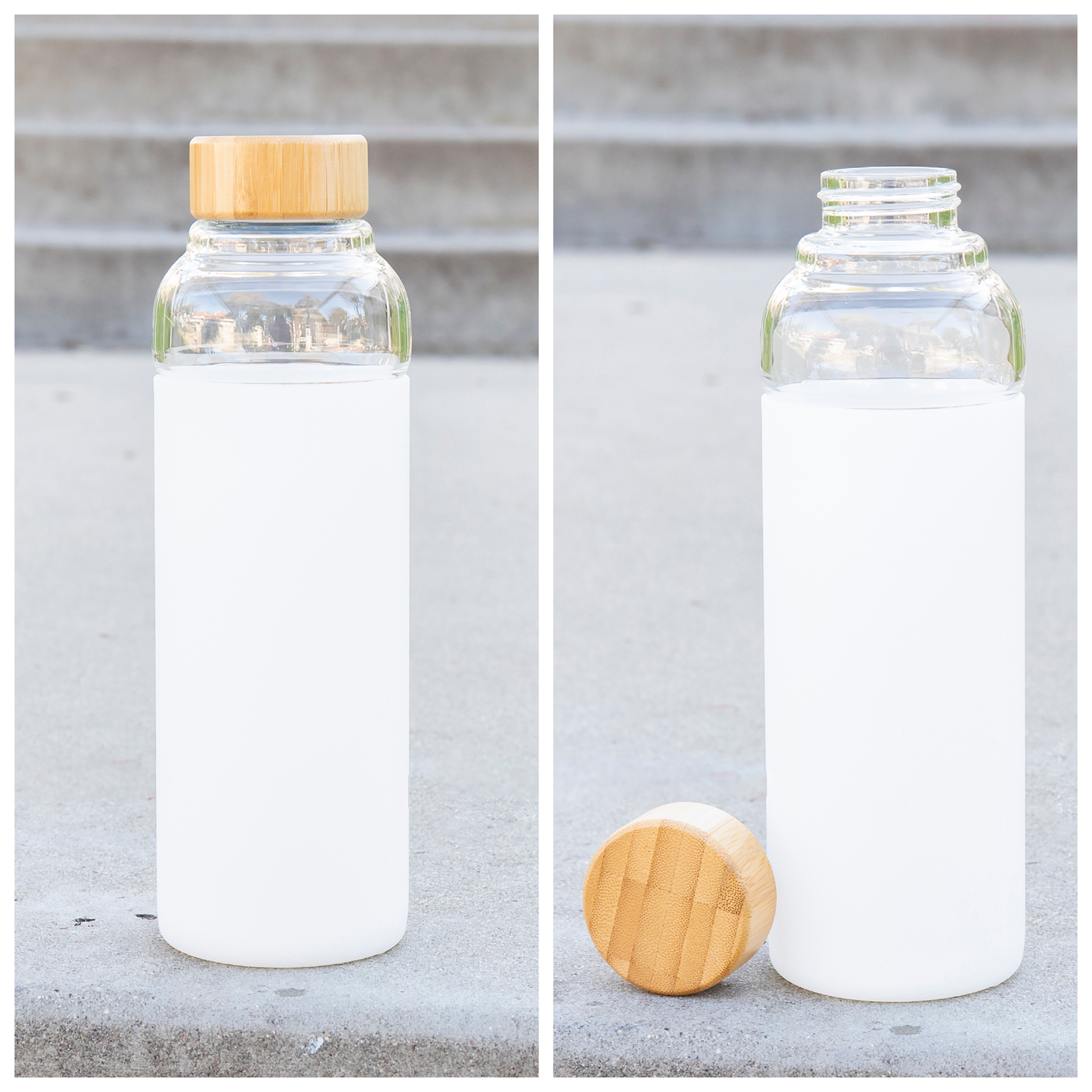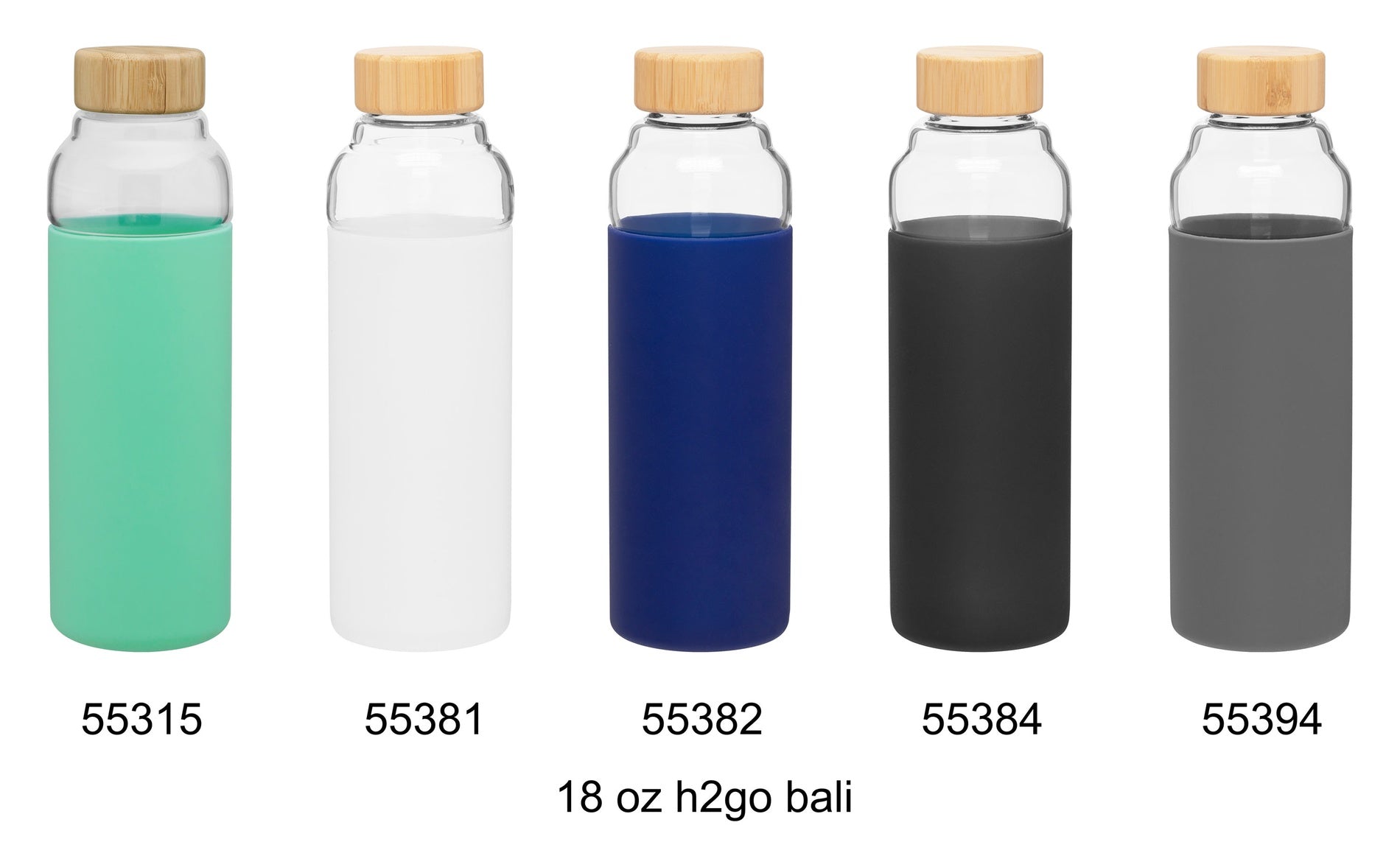The h2go Bali 18 oz glass bottle combines natural materials with everyday function. Made from durable single wall borosilicate glass, it features a threaded bamboo lid and a protective silicone sleeve that adds grip and guards against bumps. Perfect for cold beverages, the Bali is a stylish and sustainable companion for work, wellness, or life on the go.