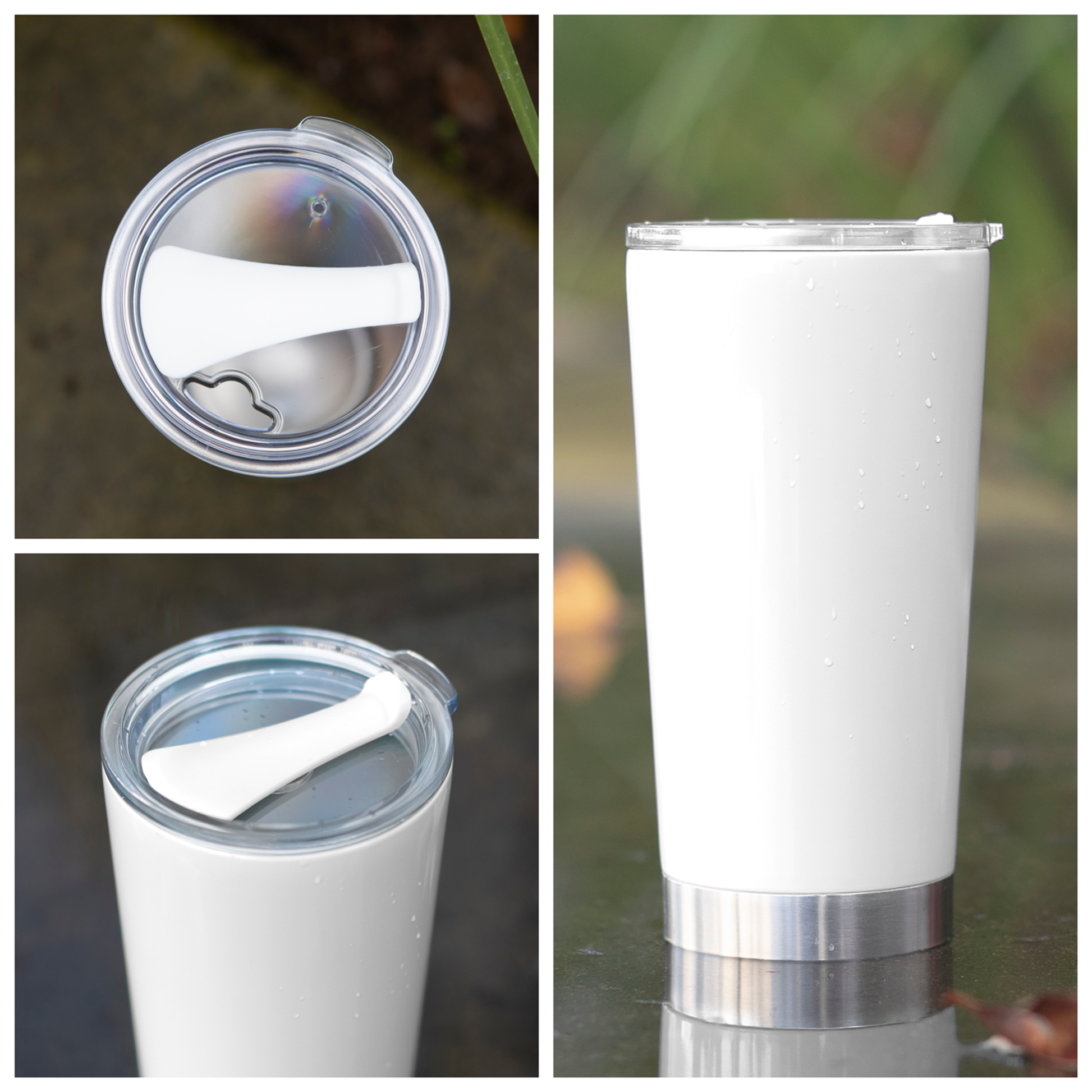 The Frost 20 oz thermal tumbler combines sleek style with reliable performance. Made from double wall 18/8 stainless steel with vacuum insulation, it keeps beverages hot or cold for hours. It features a clear push-on lid with a matching swivel closure for easy, spill-resistant sipping. Finished with a glossy exterior, it’s a polished, practical choice for home, work, or on the go.