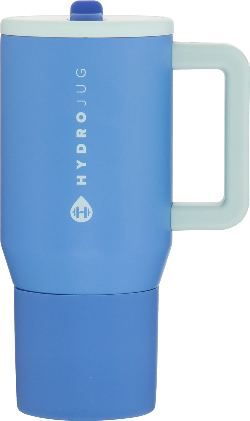 The HydroJug Traveler 20 oz thermal mug is built for easy sipping and all-day cold hydration. Made from durable 18/8 stainless steel with double wall construction and copper vacuum insulation, it keeps beverages cold for hours. It features an ambidextrous threaded lid with a matching flip-up spout, a wide ergonomic handle for comfortable carrying, and a soft straw for smooth sipping. A removable silicone base adds extra stability, while the powder coated finish offers a stylish, secure grip.