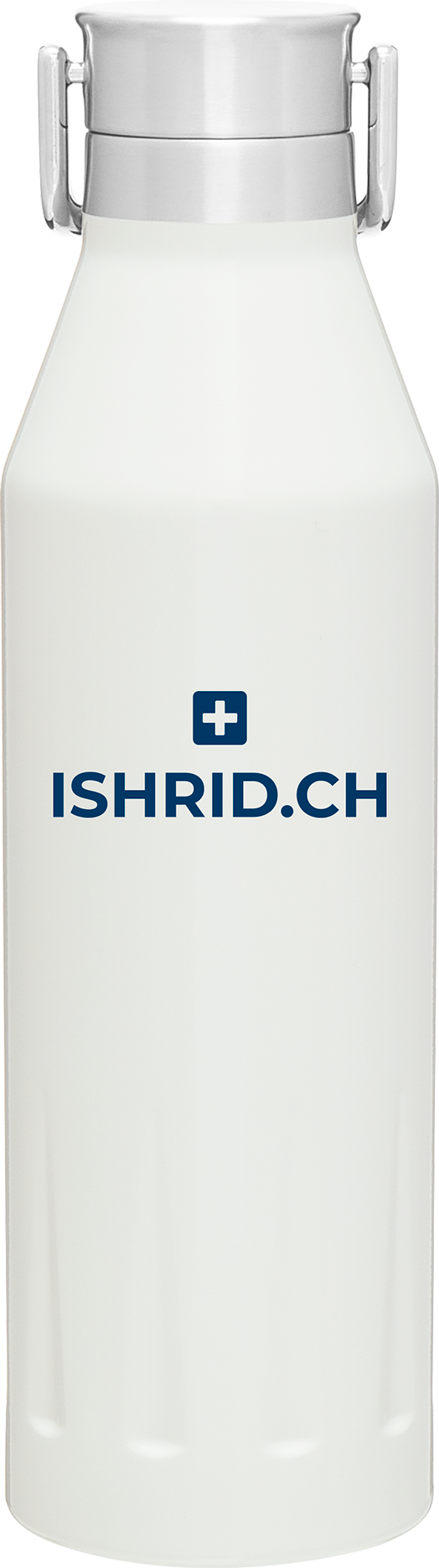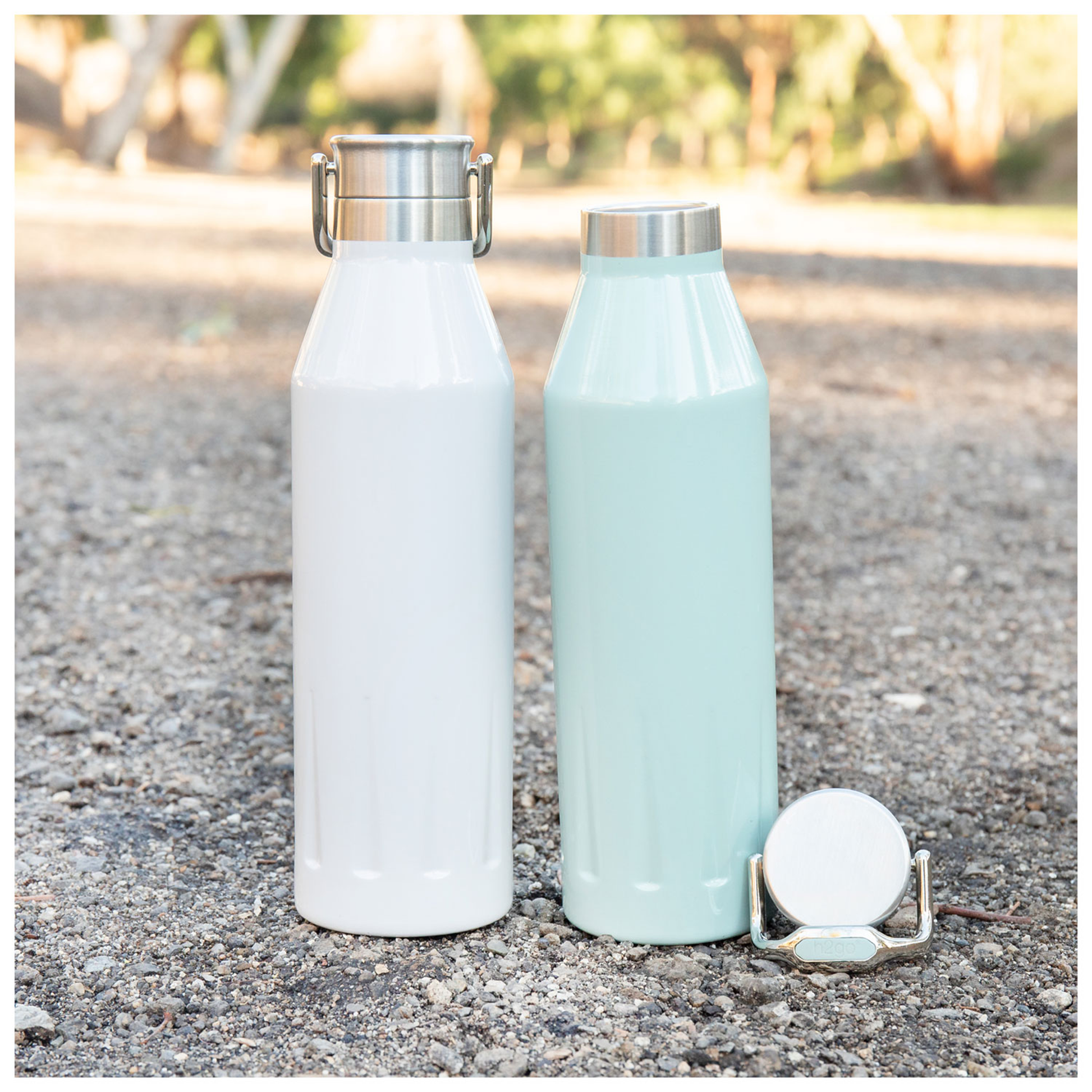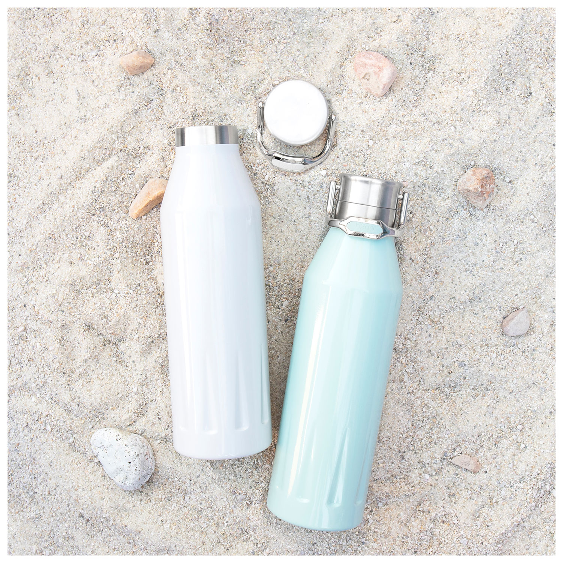 The h2go Cerro 20.9 oz thermal bottle combines performance-driven insulation with polished design. Made from double wall 18/8 stainless steel and copper vacuum insulation, it keeps beverages hot or cold for hours. It features a threaded insulated lid, a carrying handle with a matching silicone accent, and a stainless steel rim. Finished with a high-gloss exterior, Cerro is built to stand out in both form and function.