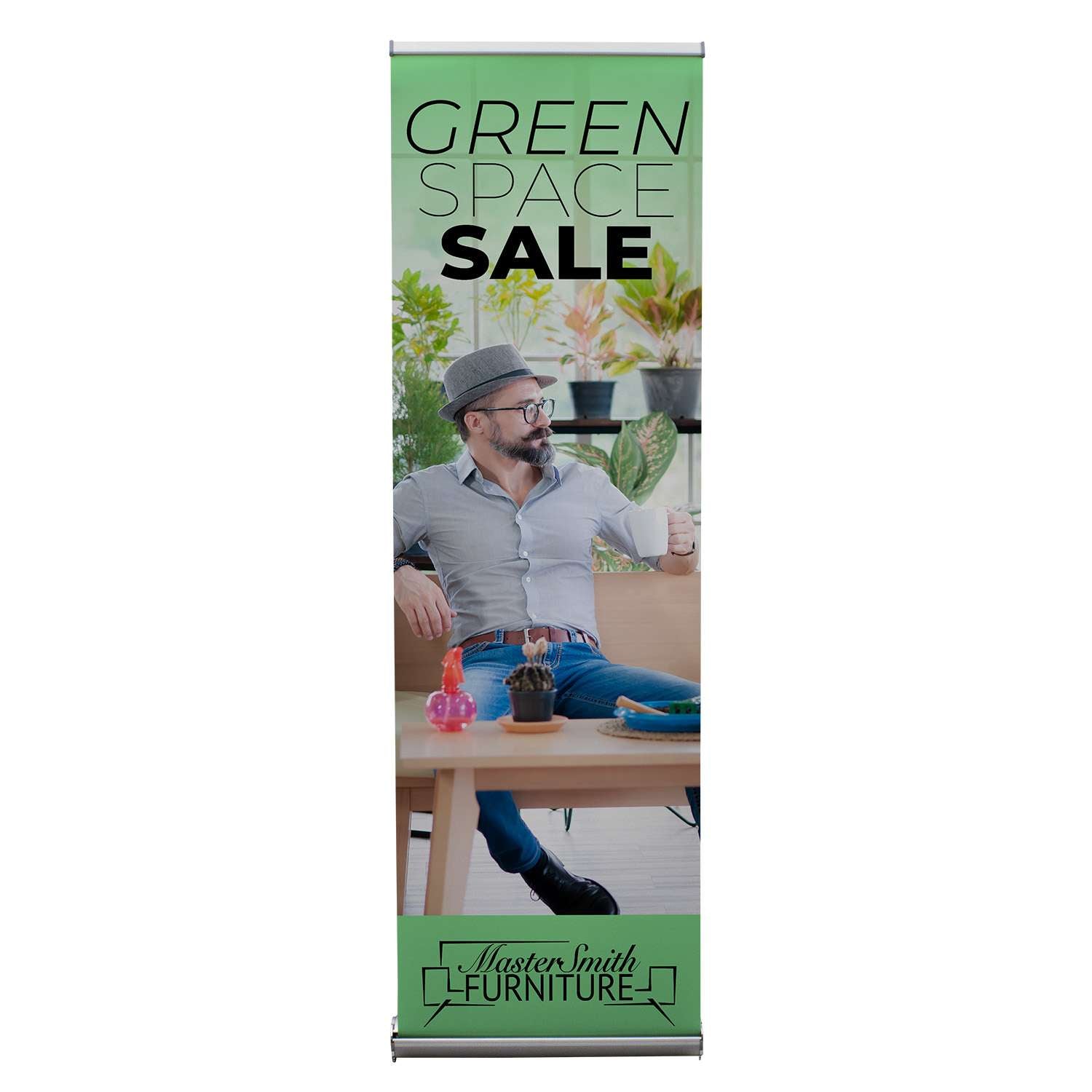 The Stratus Retractor with the PVC-free silver backed media is turning green! The aluminum streamlined base features a low center of gravity to keep it stable, eliminating the need for fold-out feet.