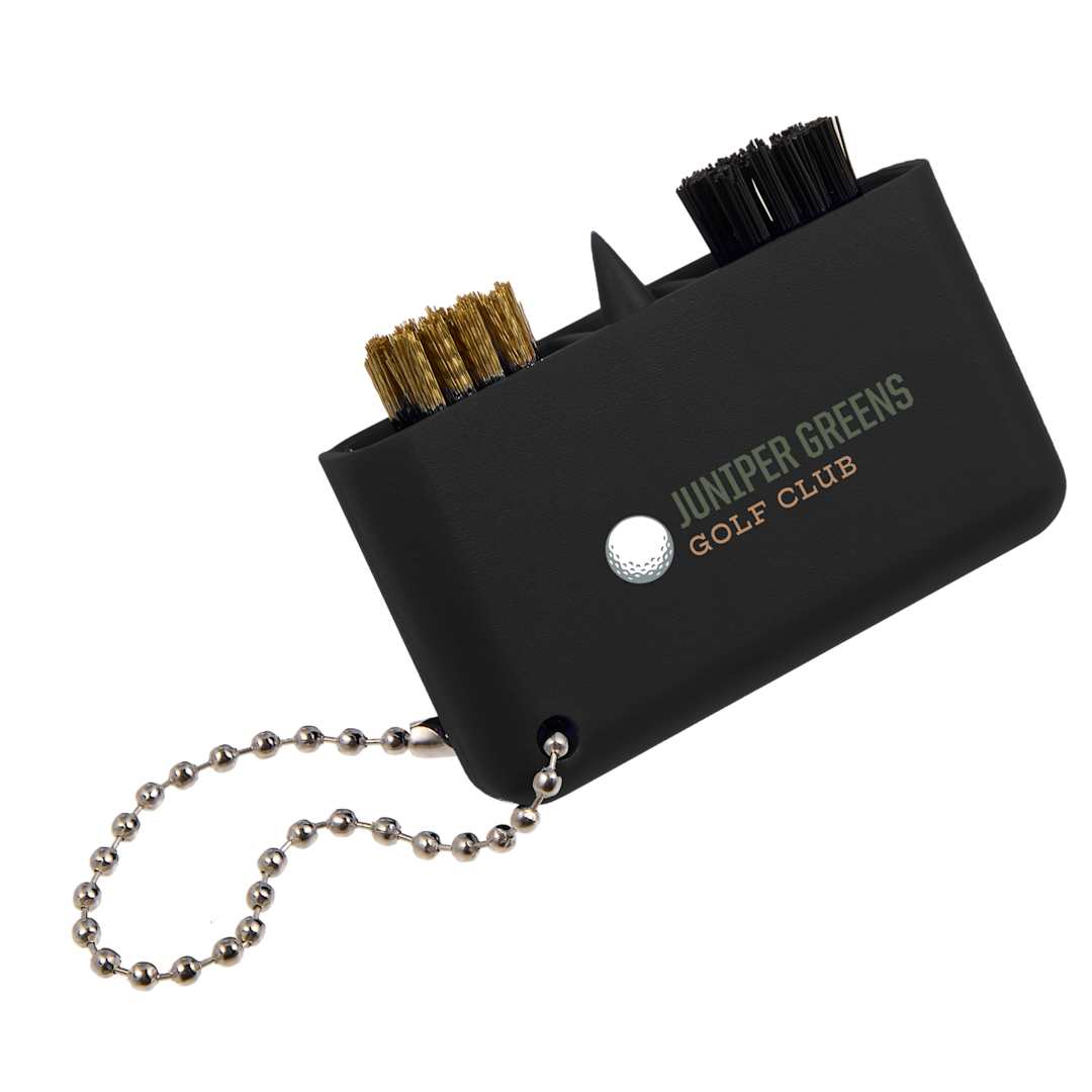The 3-in-1 Golf Cleaning Multi-Tool is all you need to keep your golf clubs and accessories clean and ready for action! This compact, multi-functional tool features a brass wire brush for tougher cleaning, a nylon brush for delicate surfaces, and a pointed plastic tool to clean out grooves in clubs. With a convenient ball chain attachment, it easily clips onto your golf bag or belt loop. One percent of sales of each purchase of this tool supports environmental nonprofits through a partnership with 1% For The Planet.