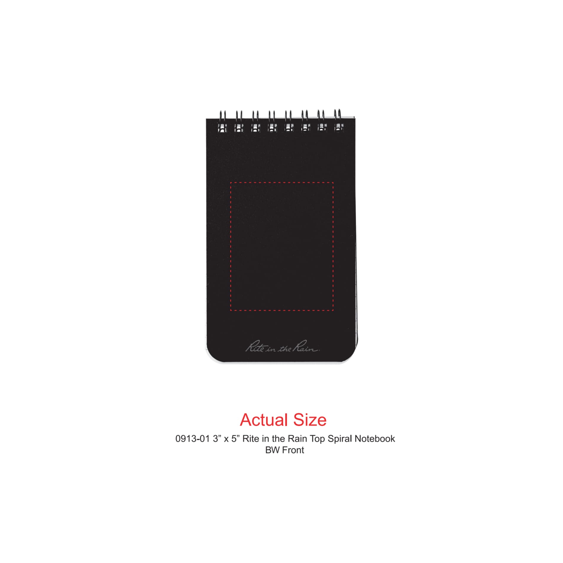 The 3” x 5” Rite in the Rain Top Spiral Notebook is tough enough to survive rain, sweat, mud and anything else mother nature throws at it. This notebook features a hard polydura cover to protect your notes from scratches and stains and impact-resistant Wire-O binding that will keep its shape. Includes 50 sheets of white lined paper.