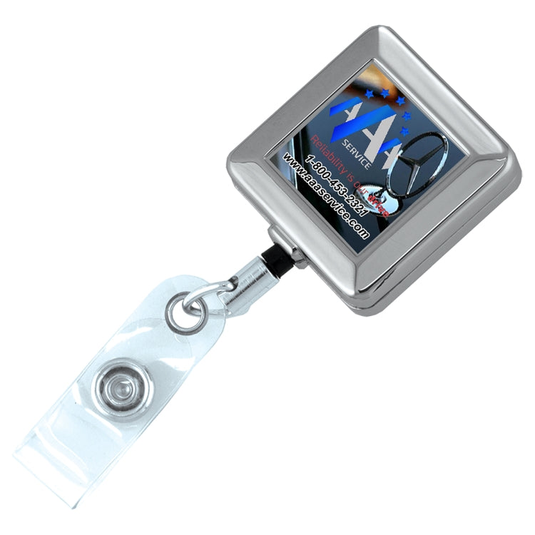 32" Cord Square Chrome Solid Metal Retractable Badge Reel and Badge Holder