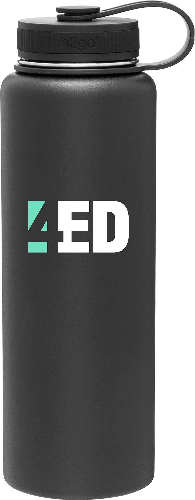 The h2go Venture 40 oz thermal bottle is built for high-capacity hydration and rugged performance. Made from double wall 18/8 stainless steel with copper vacuum insulation, it keeps drinks hot or cold for hours. It features a threaded insulated lid with a silicone band for comfort and a lid retaining loop for added convenience. Finished with a durable powder coated exterior, this bottle is ready for trails, travel, or daily use.