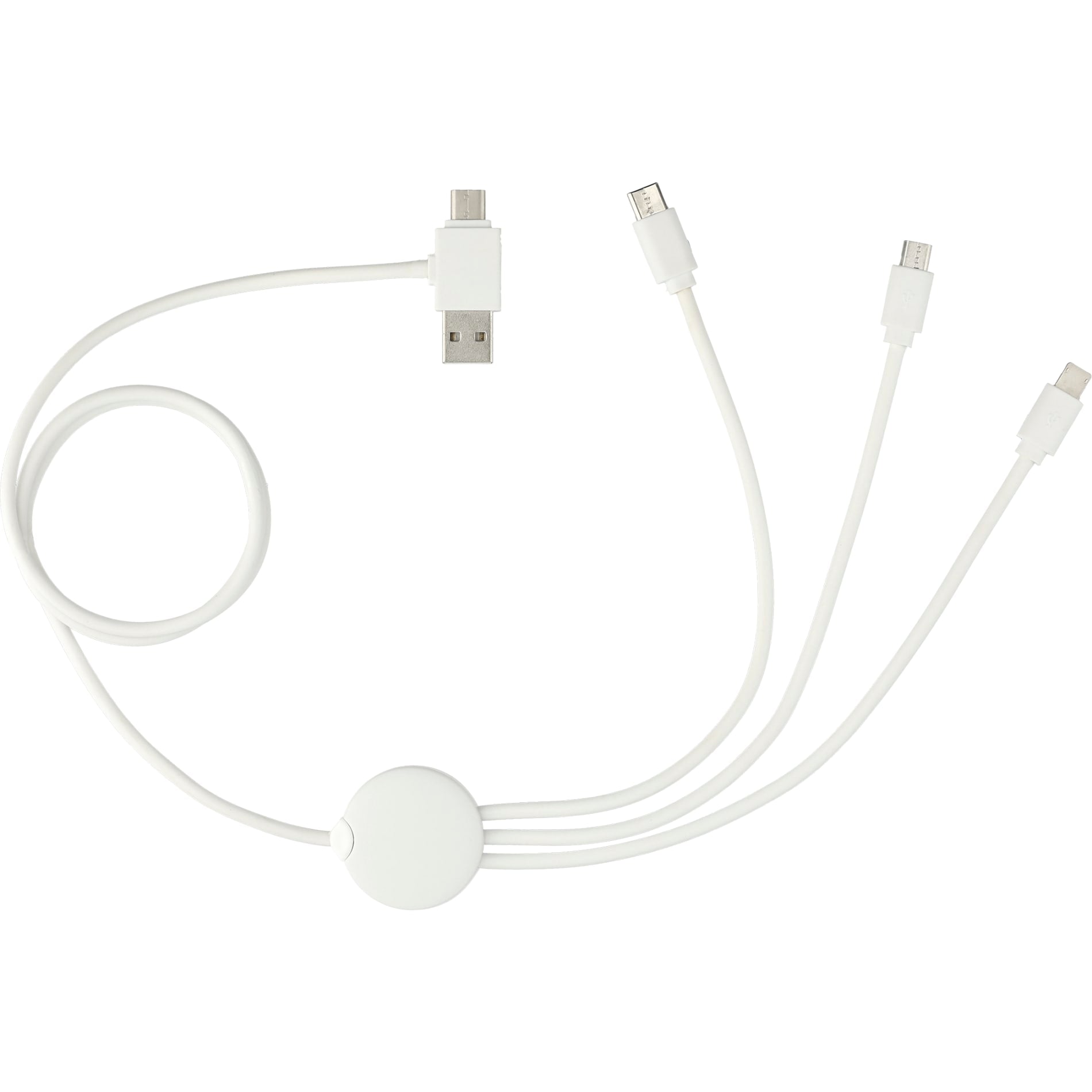 The 5-in-1 Charging Cable with Coating includes a USB-A tip and Type-C Input tip on one side and the other side includes a 2-in-1 dual compatible tip for both Apple® iOS and Android devices (up to 2A current), a micro tip (up to 3A current) and a Type-C Output tip (up to 3A current) . Cable length 39". Available for shipment within the United States (including Alaska Hawaii & Puerto Rico). Not available for export. This product contains a preservative applied as a coating only to protect the product. Antimicrobial properties are built in to inhibit the growth of bacteria that may damage this item. The antimicrobial properties do not protect users or others against bacteria, viruses, germs, or other disease organisms.