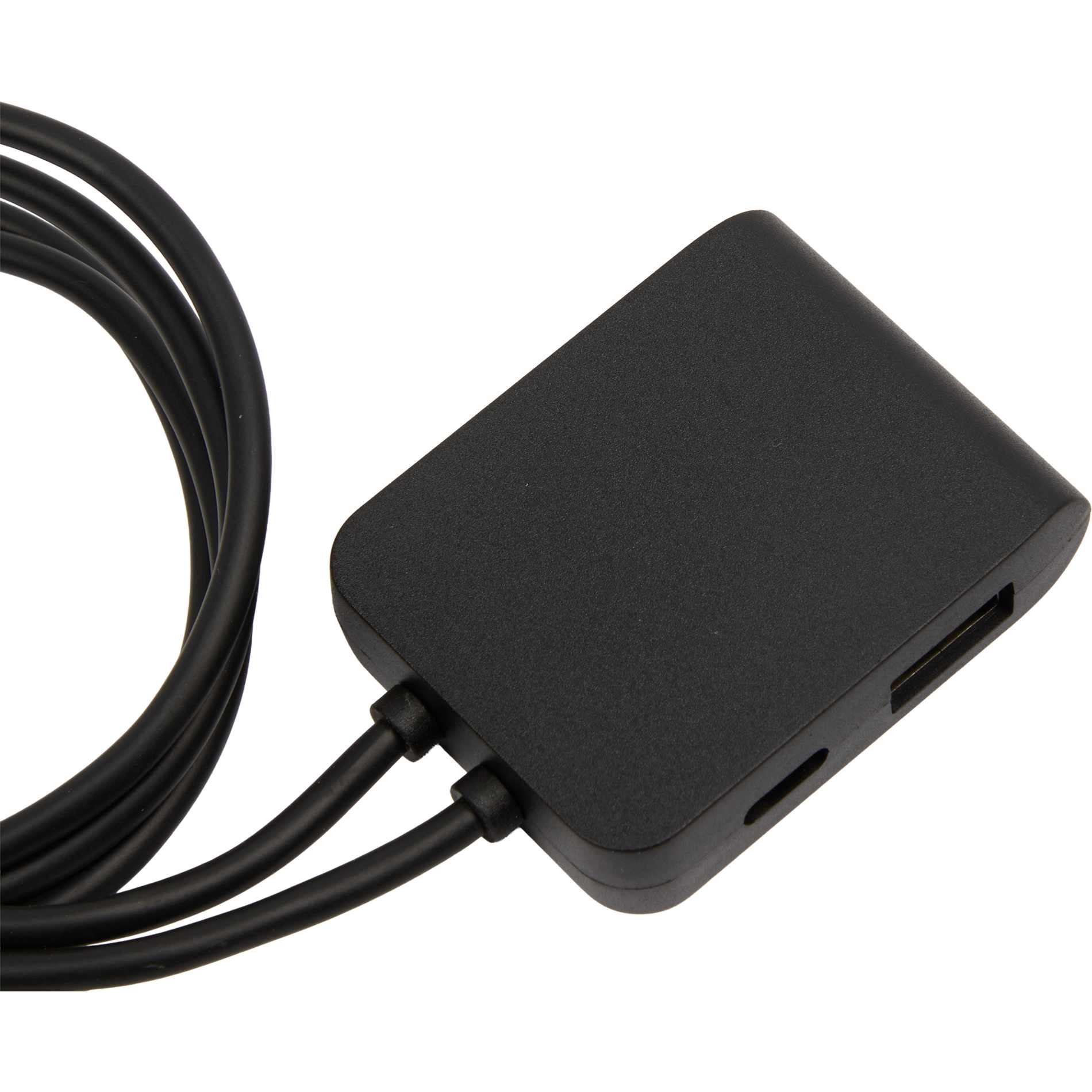 The 5-in-1 Charging Cables with USB-A/C Hub features two 24'' long cables, one cable with a USB Type-A input tip and a USB Type-C input tip, and the other cable with a Type-C output tip and a two-in-one dual compatible tip for both Apple iOS and Android devices (up to 5V/2A, 10W charging speed). It also functions as a hub with two USB-A output ports, two Type-C output ports by connecting the Type-A input tip or Type-C input tip with a laptop or computer. It is recommended to use an AC adapter, power bank or car charger to charge devices, instead of using outputs from laptop or computer as power source.