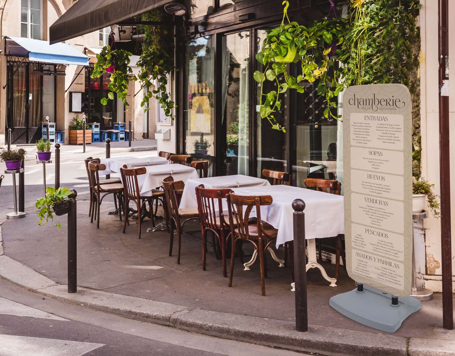 Our wildly popular EuroFit display combined with a flexible ballast base adds motion to your message.