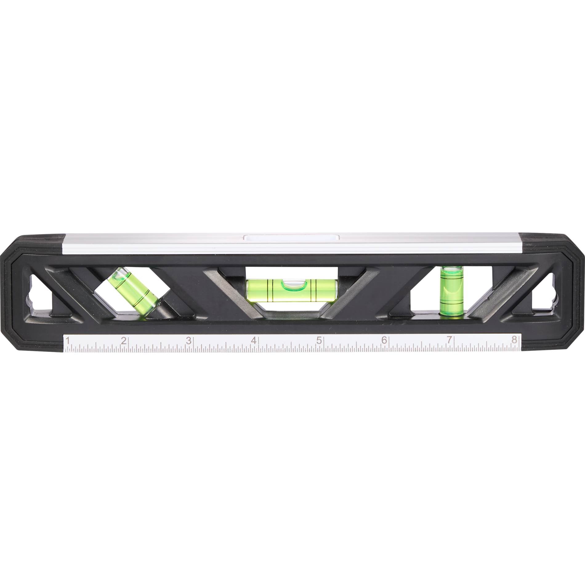 This 9-inch Recycled Magnetic Level is a feature-packed tool that can handle any size job. Crafted from heavy-duty recycled ABS plastic, it includes three different angle levels: vertical, horizontal and 45 degrees, and includes a top-view window that makes it easy to view from multiple angles. Magnetic, V-groove strip for hands-free use and secure fit on pipe and conduit. Printed metric scale for easy measurements up to 20cm. 9"L x 1-3/4" W.