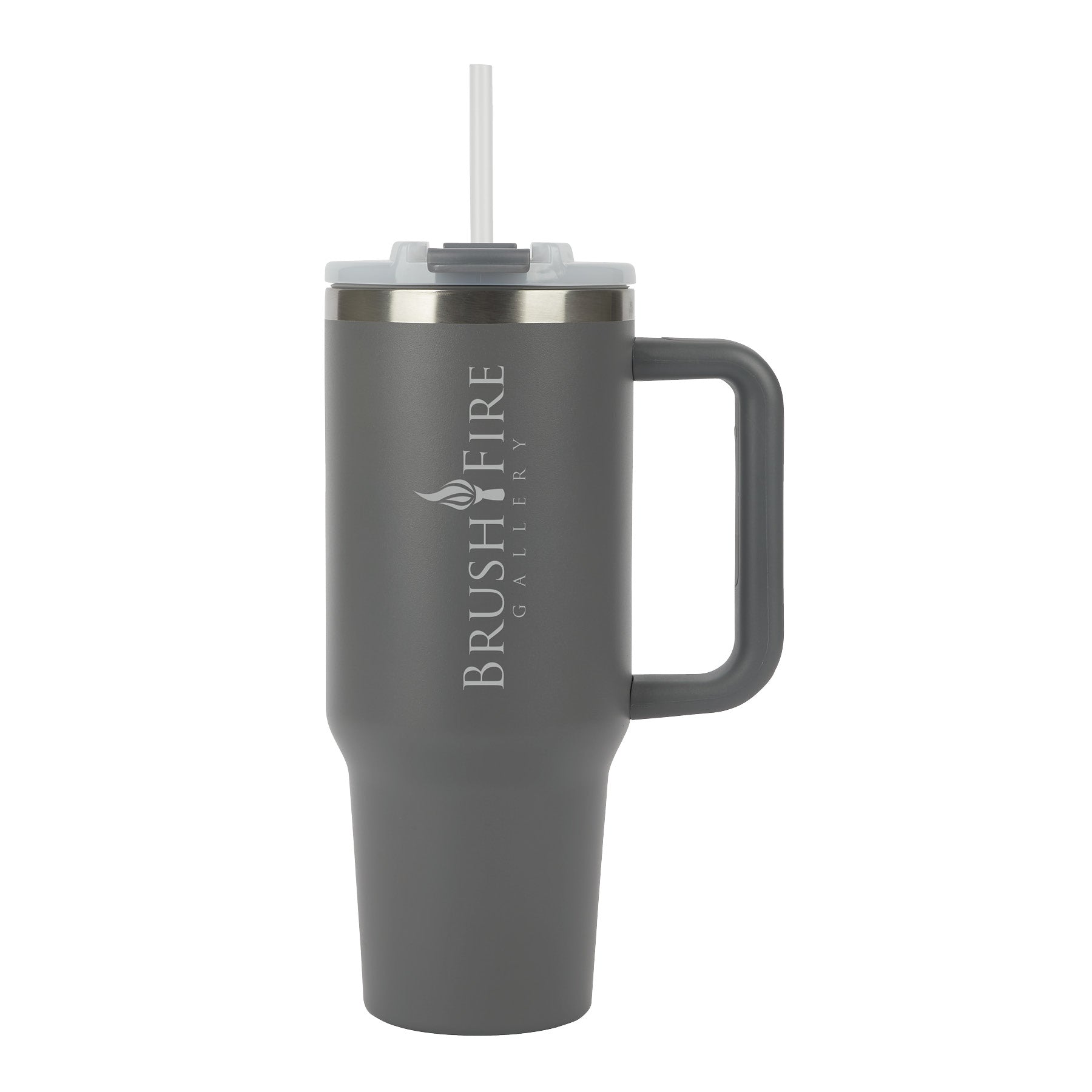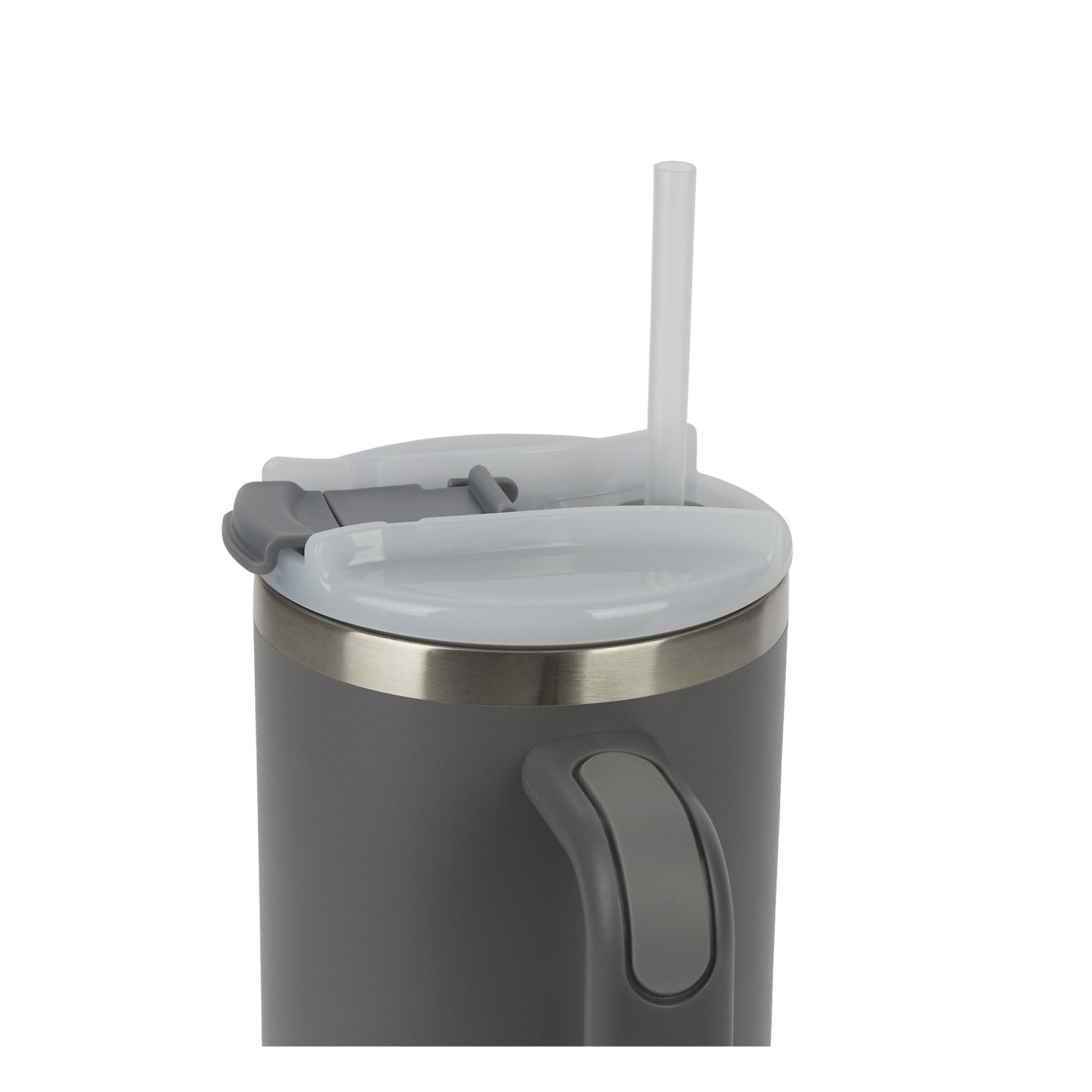 The Acadia Travel Mug offers a generous 40 oz. capacity for your favorite beverages, whether it’s a steaming hot coffee or a refreshing iced drink to keep you cool. The mug is constructed with double wall vacuum insulation to keep your favorite hot drinks hot for 12 hours and cold drinks cold for 24 hours. It features a milky white screw-top lid with locking closure that provides a secure seal, preventing leaks or spills during travel and its silicone self-sealing hole for the included drinking straw allows easy sipping on the go. Its sturdy handle with comfortably soft TPR grip and tapered cup holder friendly base allow for easy carrying and provide stability when sipping whether you are commuting, hiking or running errands. Upgrade your travel beverage experience with the Acadia tumbler and stay hydrated and refreshed wherever your journey takes you. FDA compliant and BPA Free.