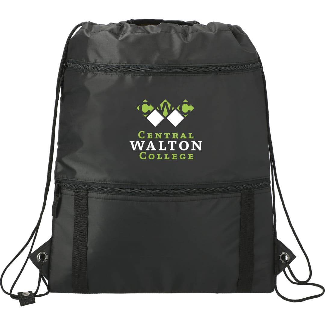 The Adventure Insulated Drawstring is an instant upgrade to your regular drawstring bag. This drawstring features a cinch closure main compartment on the top, and a zippered insulated pocket on the bottom. The daisy webbing chains are perfect for clipping your carabiner to.