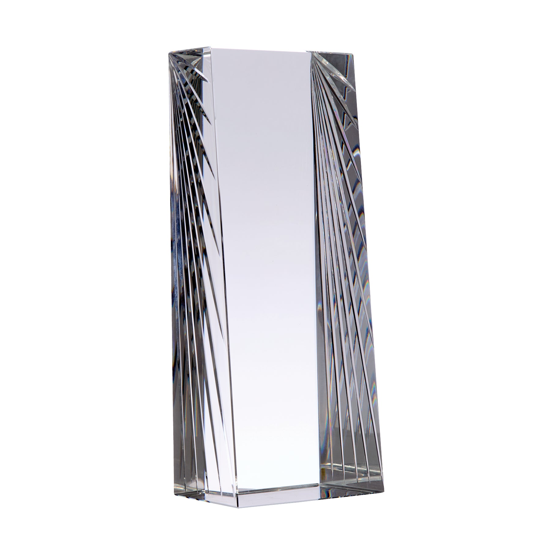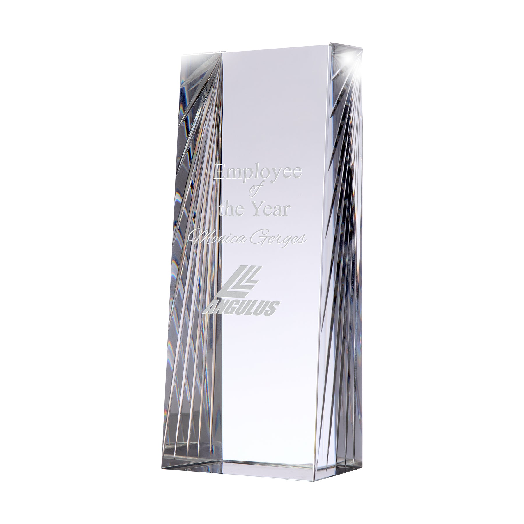 Celebrate achievements with the Alcor Crystal Award Tower. Crafted from high-quality, optically crystal clear glass, this award features a unique polygon shape that commands attention. The sleek, multifaceted design offers a contemporary aesthetic, perfect for celebrating milestones in any professional or personal setting. The intricate laser-engraved pattern adorns both sides, adding a touch of sophistication while catching the light beautifully to create a dynamic visual effect.