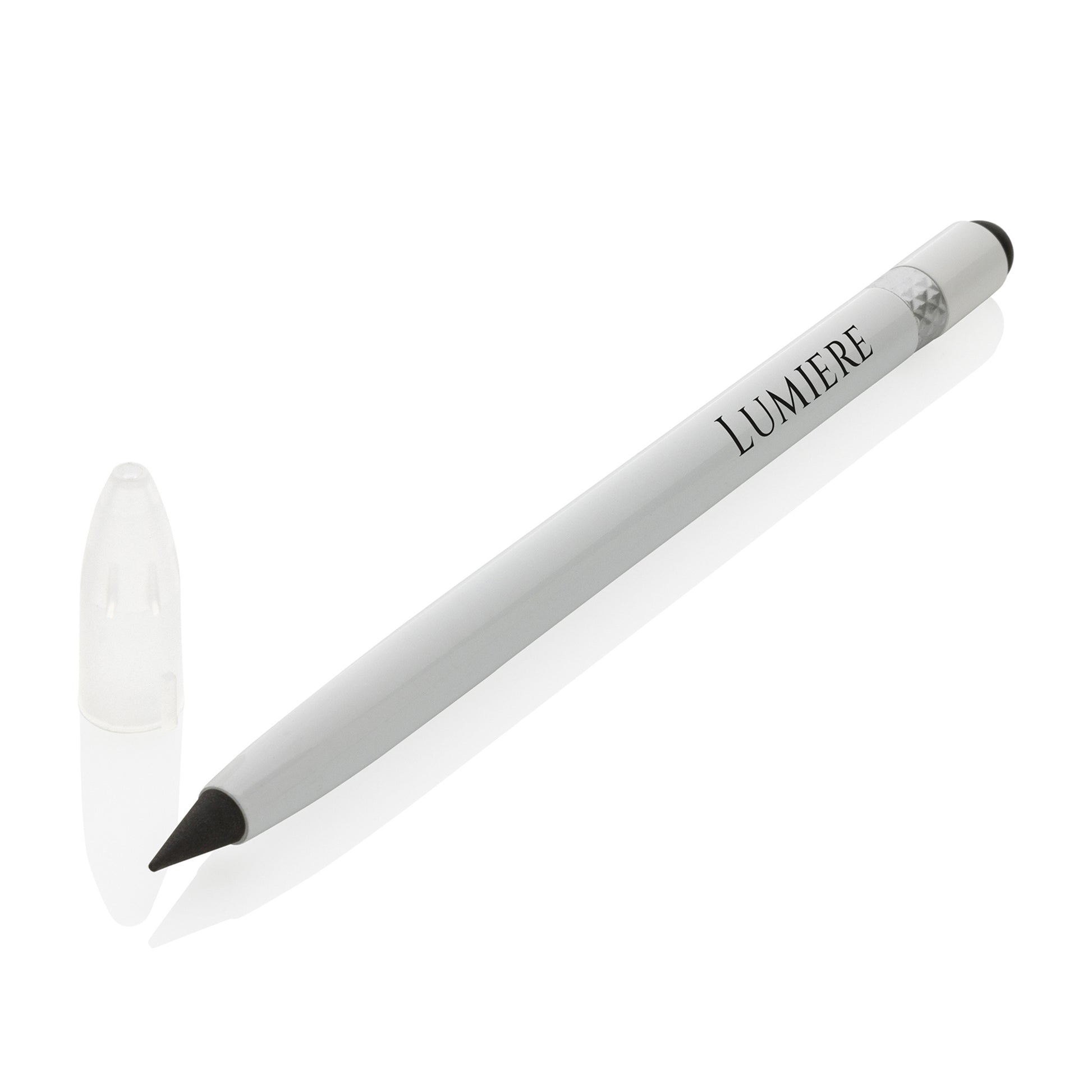 This inkless pen with eraser replaces your traditional wooden pencil. It uses a graphite tip to produce a smooth, consistent line