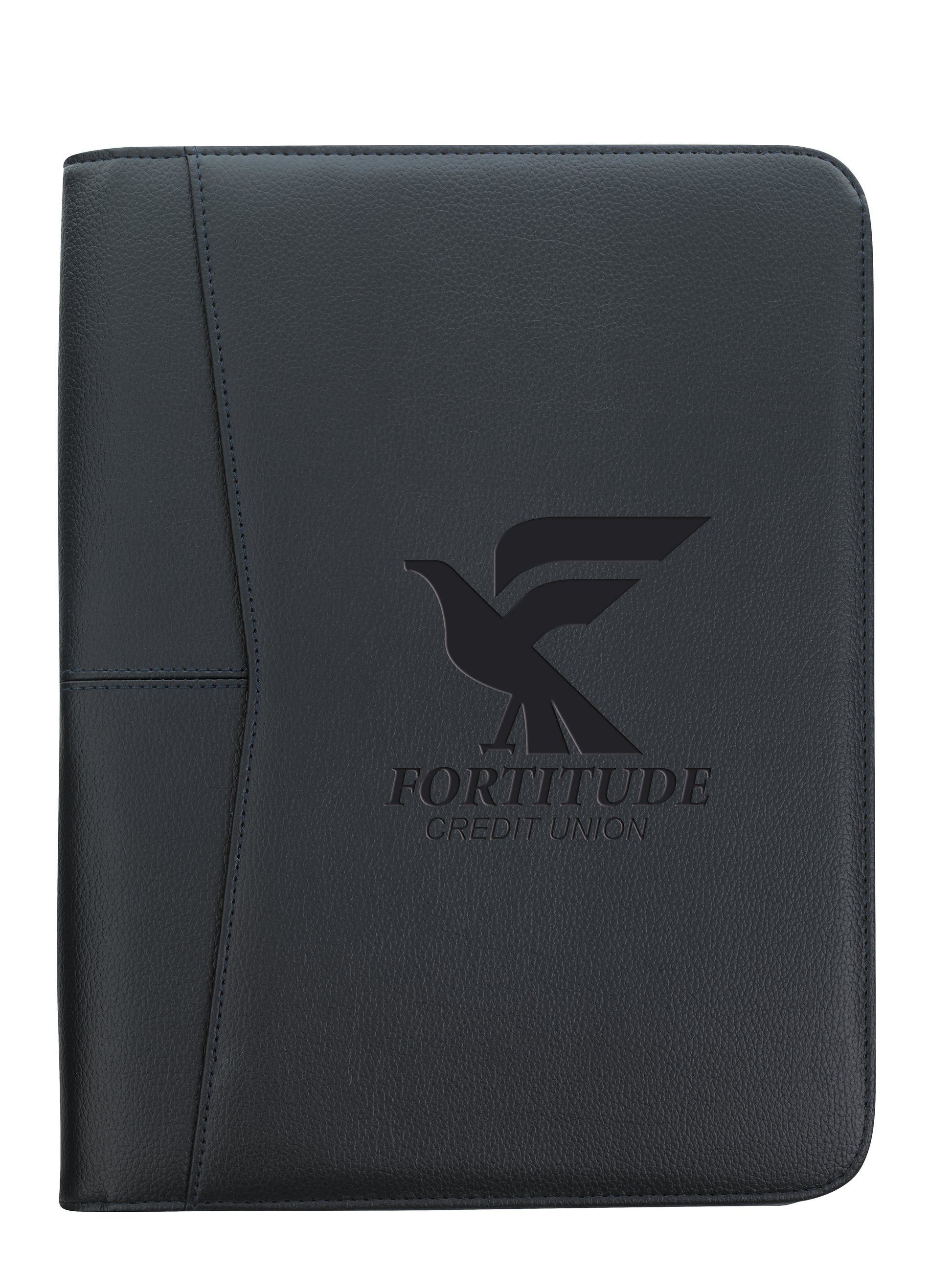This sturdy vinyl padfolio has a textured finish and stitched details to give it a premium look. The interior organizer has lots of options for keeping your business essentials together, and you can zip the whole thing shut to keep everything secure as you rush off to your next appointment.