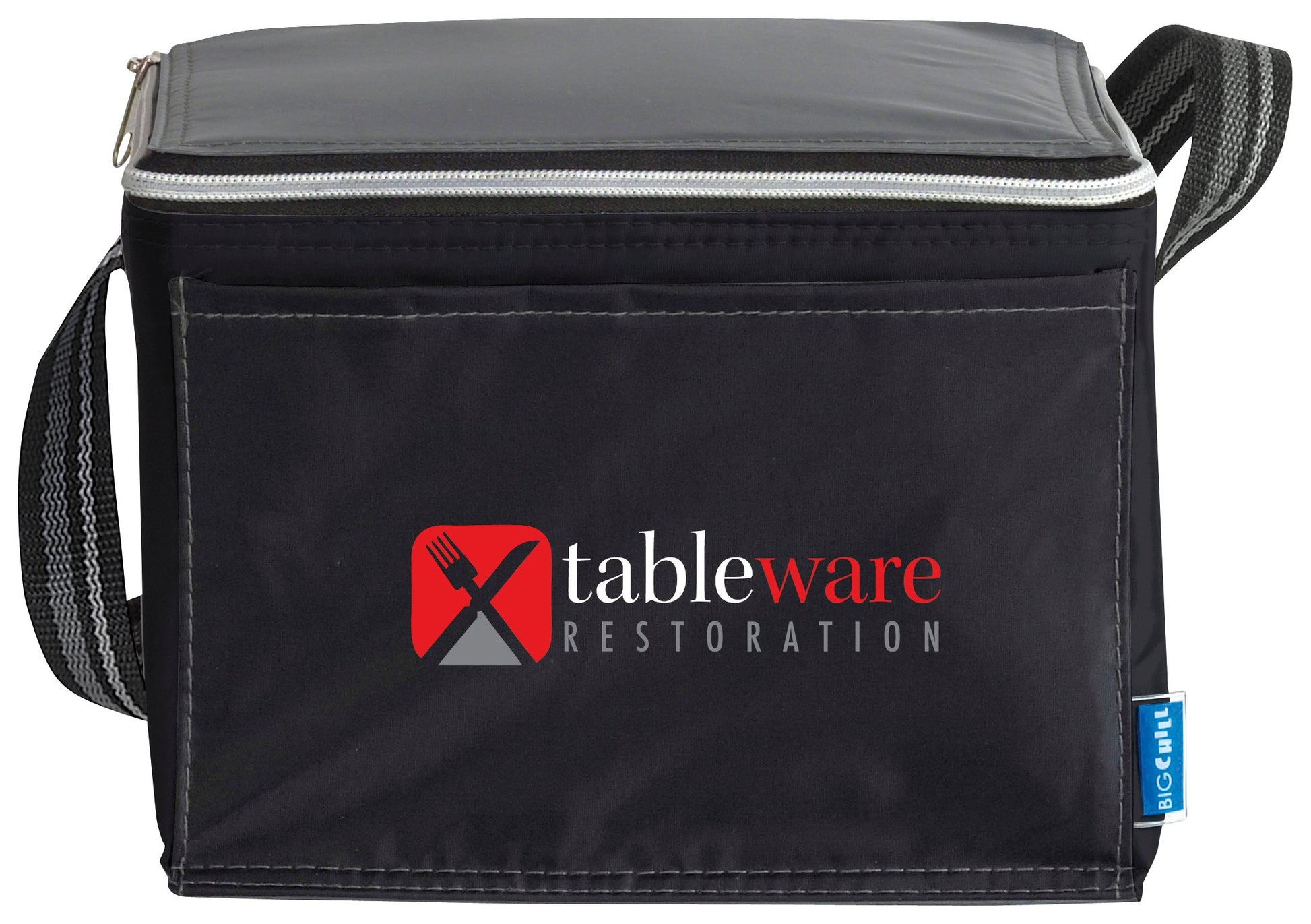 This cooler will get attention with vibrant colors to choose from. This cooler has a six can capacity, front slip pocket, and striped shoulder strap reinforced with rivets.