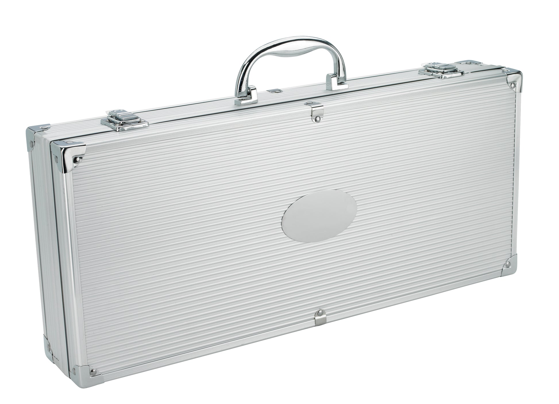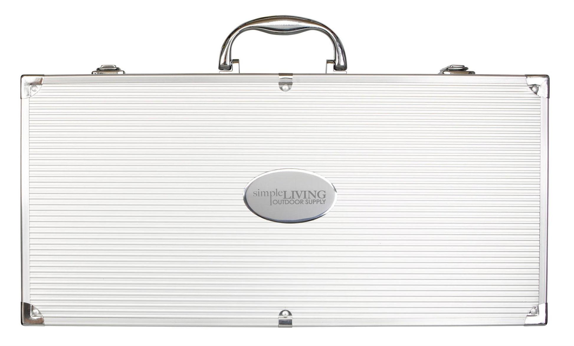 Perfect for your next BBQ, this 10-piece set has everything you need, including tongs, spatula, fork, basting brush, and 4 skewers. And, you can store it all away easily in its sturdy carrying case.