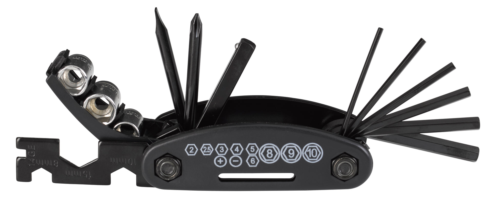 This is a must-have bike repair kit, perfect for DIY bike maintenance. With 16 different functions and a convenient carabiner, it easily goes beyond just bike repairs.