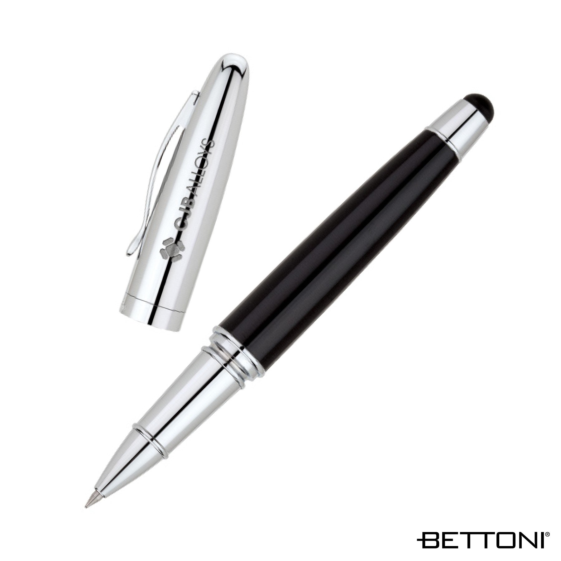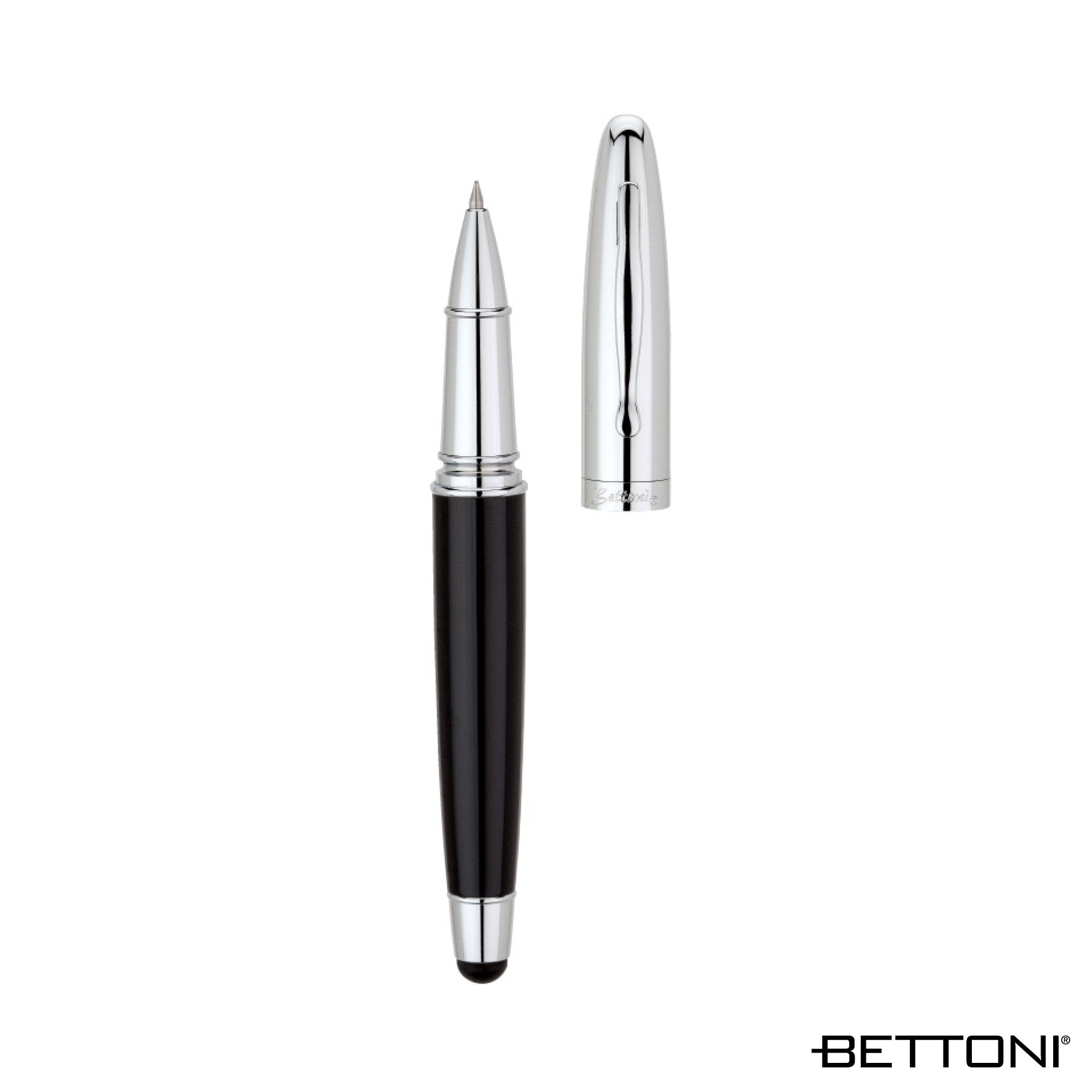 Brass cap-off Bettoni rollerball pen with high gloss lacquered barrel, chrome cap and trims, and a capacitive stylus... See details