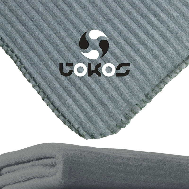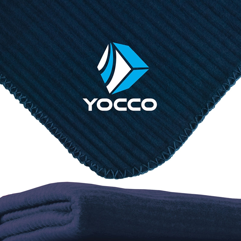 50" x 60" anti-pilling fleece blanket with whipstitch edging, 100% polyester.