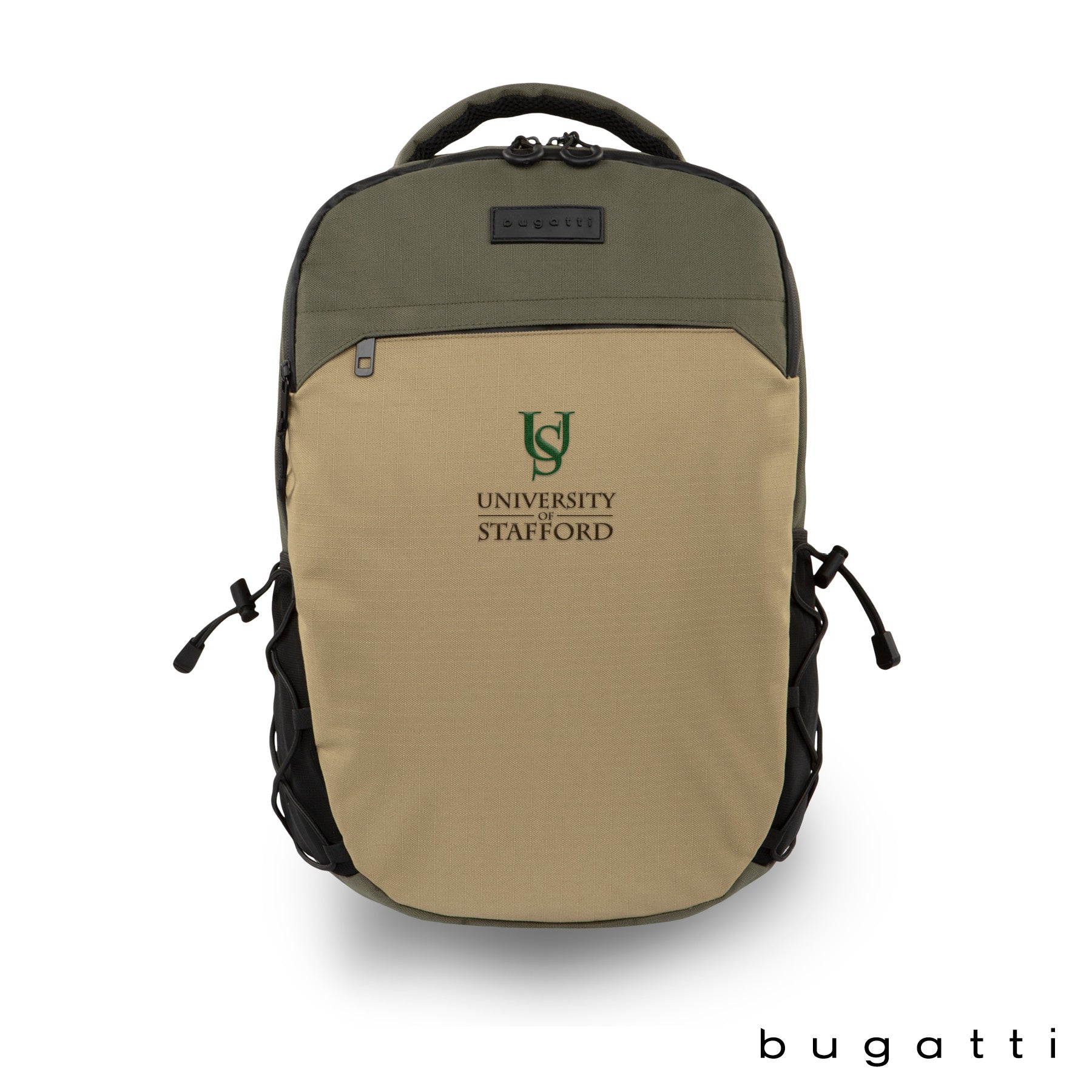 Explore the world well-equipped with the Outland Collection Urban Backpack from Bugatti featuring ultra-resistant textured rip-stop polyester. Its large central compartment includes 2 slip pockets and a zippered pocket and its padded backside zippered compartment will hold a laptop or tablet up to 15.6". The Outland Urban Backpack also has a zippered front section for easy storage of your electronic accessories, a smaller front pocket with zip closure for easy access to your smartphone, keys, and wallet, and 2 side mesh pockets with adjustable elastic tie-downs. The top handle, backside and adjustable shoulder straps are well padded for maximum comfort and the buckled chest strap provides improved weight distribution. This sling bag also features Bugatti easy-pull looped zipper pullers and a one-year limited warranty.