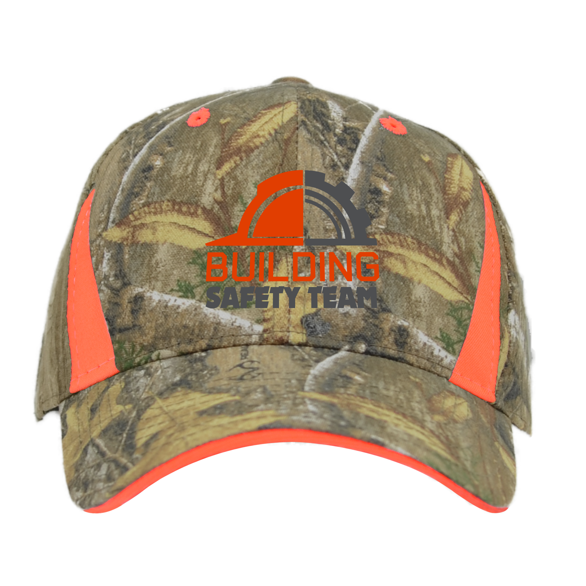 Camo Cap With Blaze Inserts features accent colored blaze inserts and fits most sizes. See details