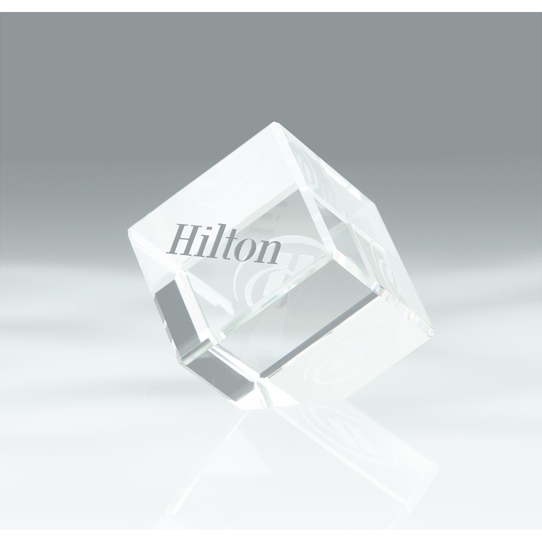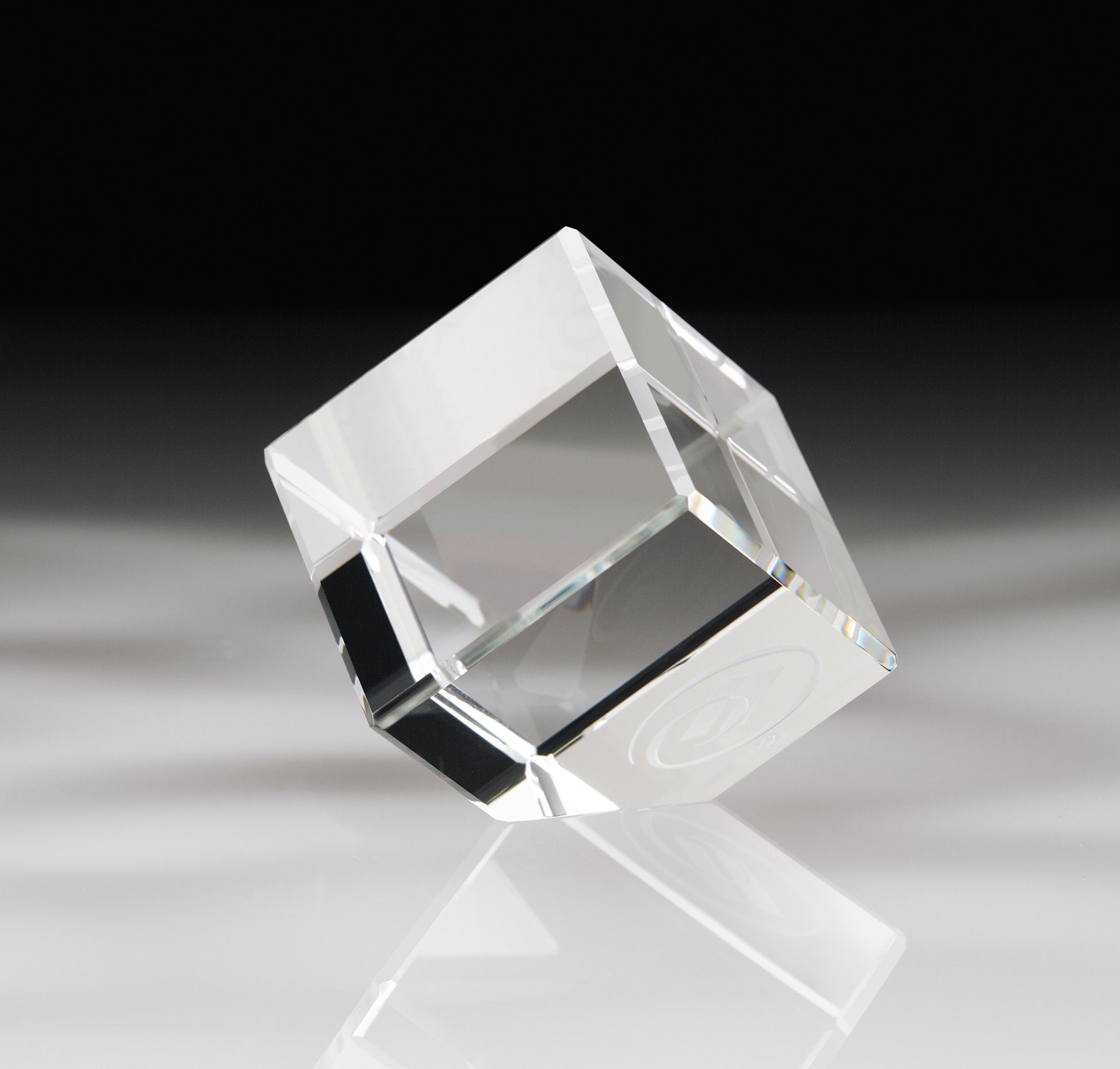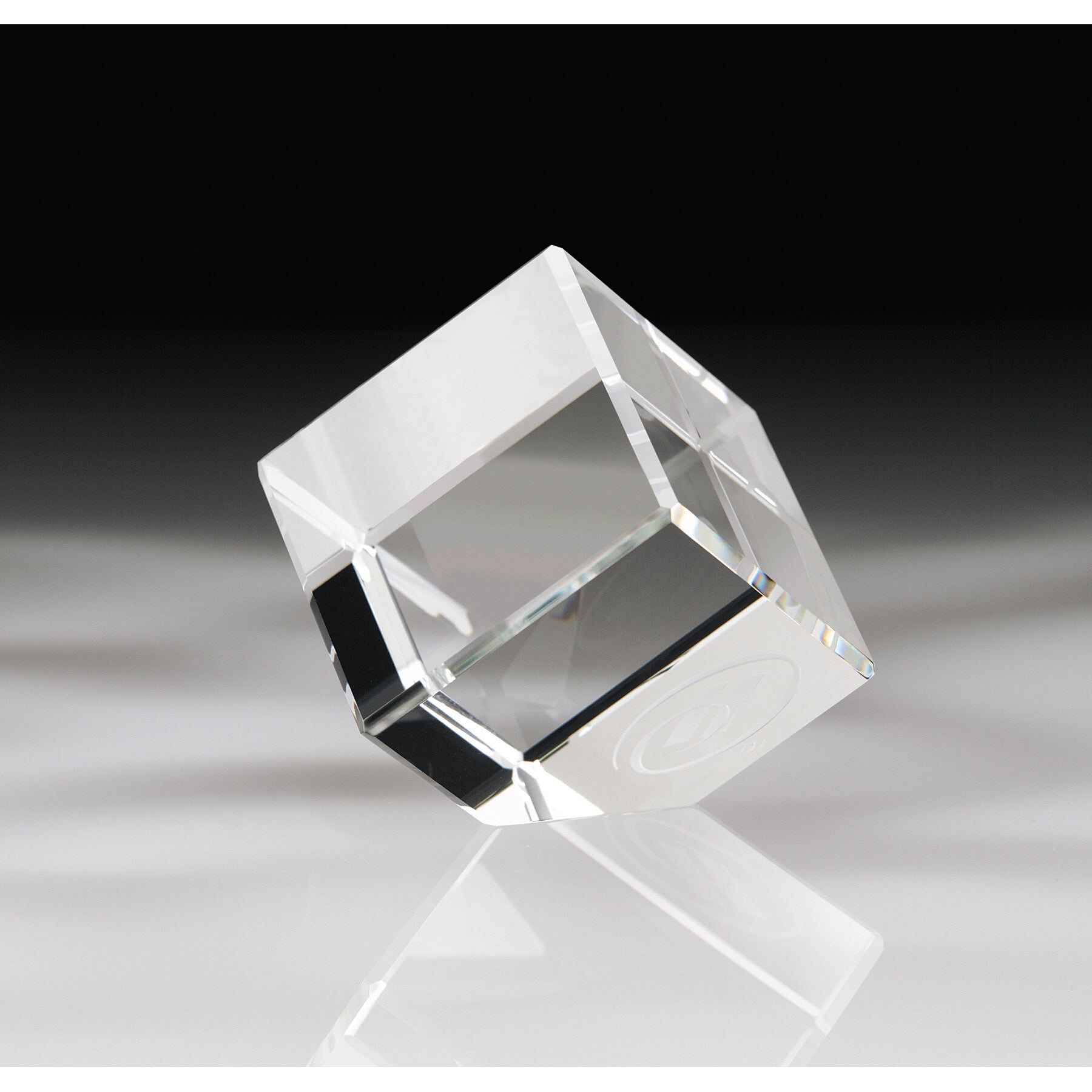 Small corner block award made from optical crystal.