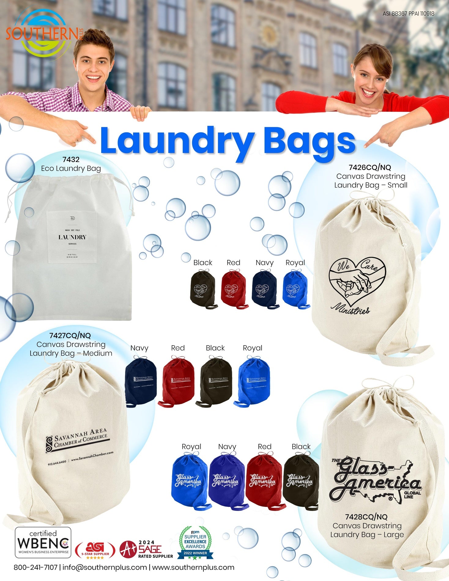 This Cotton Sling Holds Everything! 12 Oz. Cotton canvas drawstring sling sack. Web shoulder strap. Reinforced at stress points. Great for laundry bag, travel duffel, or sports bag. One of our favorite bags to stuff and go with whatever life throws at you. With 3 sizes to choose from, it will satisfy papa, mama and baby bear!