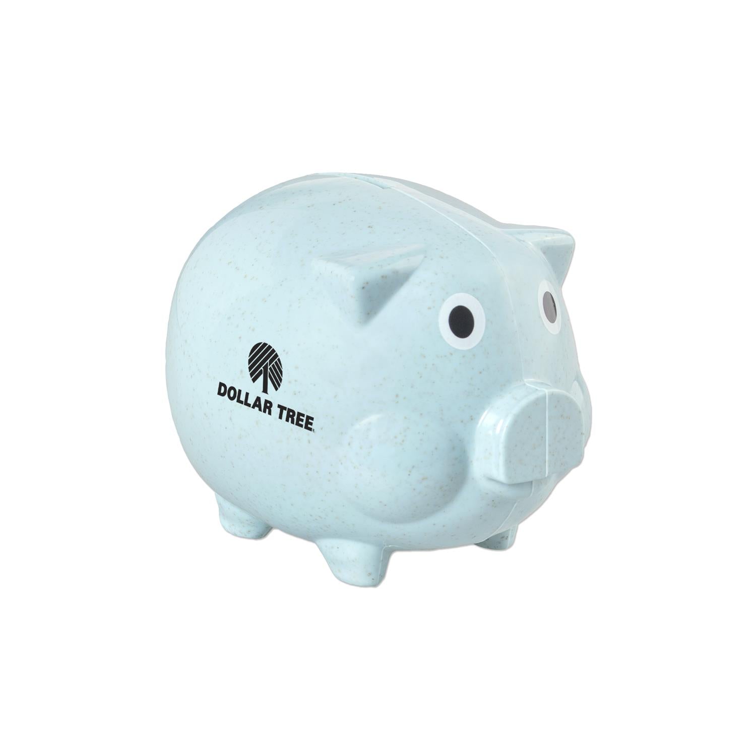 This piggy bank is a great giveaway for financial institutions who want to participate in reducing their carbon footprint. Made from Biodegradable Wheat Fiber mixed with Plastic. Eco Friendly wheat fiber reduces plastic used in this item by 50%. Perfect for learning about money and improving the environment. Remove plug on bottom to remove money. Available in blue, green, and natural.