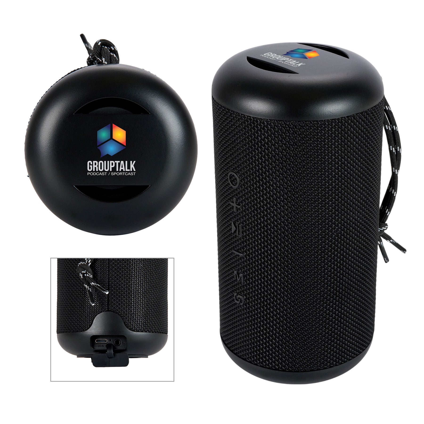 Experience powerful sound in a compact, portable design with the Daryl 7W Wireless Fabric Speaker. Featuring a stylish black cylindrical body wrapped in a modern fabric finish, this speaker seamlessly blends into any setting—indoors or out. The built-in wrist strap makes it easy to carry wherever life takes you, while its IPX5 waterproof rating ensures durability against splashes and light rain. Whether you're hosting a backyard gathering or relaxing at home, this speaker delivers rich audio performance and dependable wireless convenience. The Daryl includes a USB-C to -A charging cable to recharge its 1500mAh lithium battery and comes in a brown gift box. Playback time: 3-4 hours per charge.