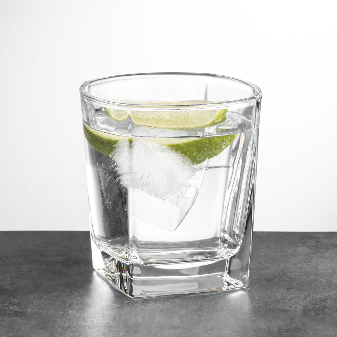 The Arcadia On-the-Rocks Glass features a stylish square sham that gracefully tapers to a round opening, creating a modern and sophisticated silhouette. This unique design enhances your drinking experience, making it perfect for enjoying your favorite cocktails or spirits in style.