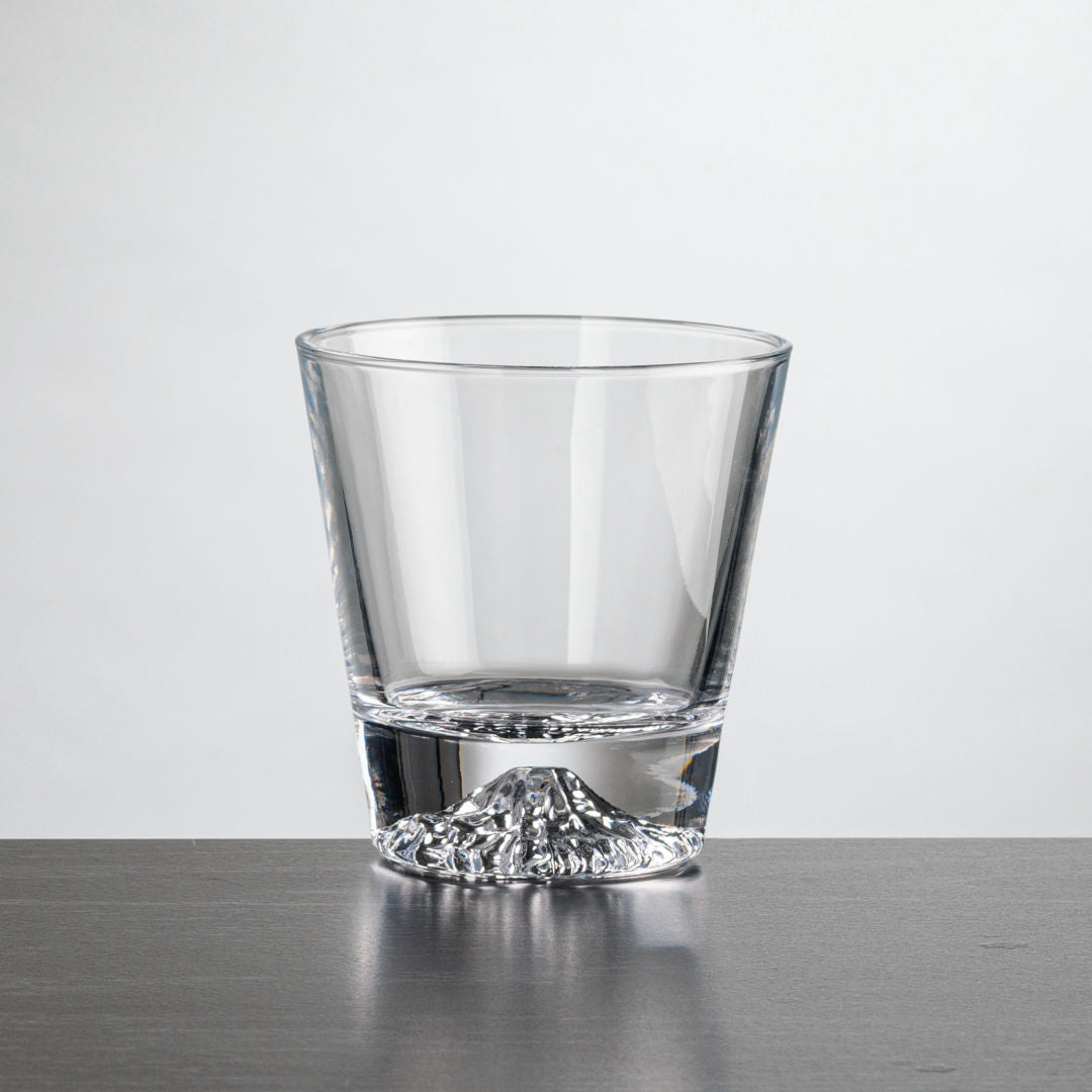 The Aspen On-the-Rocks Glass showcases a stunning rendition of the iconic Aspen mountain range, in its thick sham base. This finely detailed design pays homage to nature's grandeur and adds a touch of rustic charm to your drinking experience. Priced per piece.