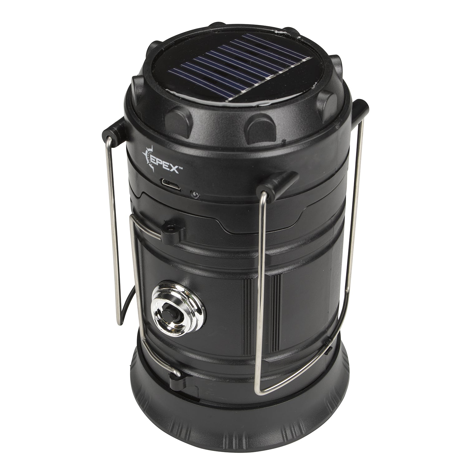 Wherever you adventure, EPEX® gear will get you there. This impressive COB lantern delivers 300 lumens of brightness and up to 6 hours of continuous power. Featuring a convenient pull-up design, it also functions as a flashlight with its bottom-mounted light, making it ready to meet various lighting needs. With sturdy metal handles allowing for vertical or horizontal hanging and the option for solar charging or USB charging using the included cord, this essential piece of gear is your reliable companion for camping, emergencies, and outdoor activities.