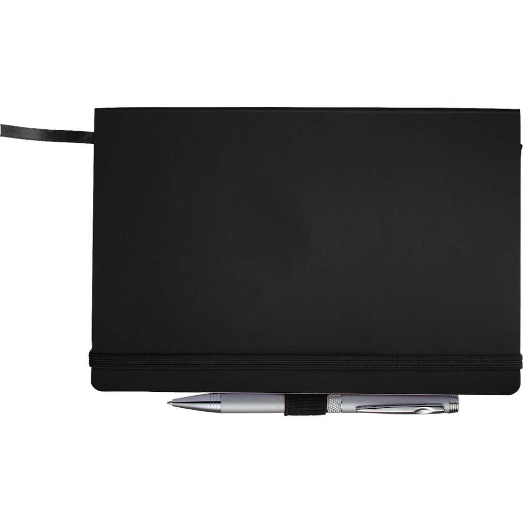 The 5.5" x 8.5" FSC® Mix Nova Soft Bound Journal features a soft cover with built-in elastic closure. This specialty notebook offers a ribbon page marker, expandable accordion pocket and pen loop. The Nova Soft Bound Journal includes 96 sheets of lined white FSC® Mix paper. Pen not included.