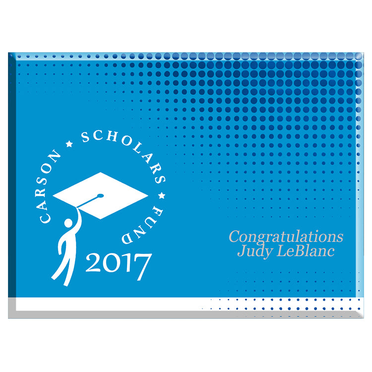 The Technicolor Plaques have up to 3 imprint colors (on the front or back) included in the price. (One color must be the full background bleed color). A Leatherette easel back/wall hanger and gift box are included in the price.