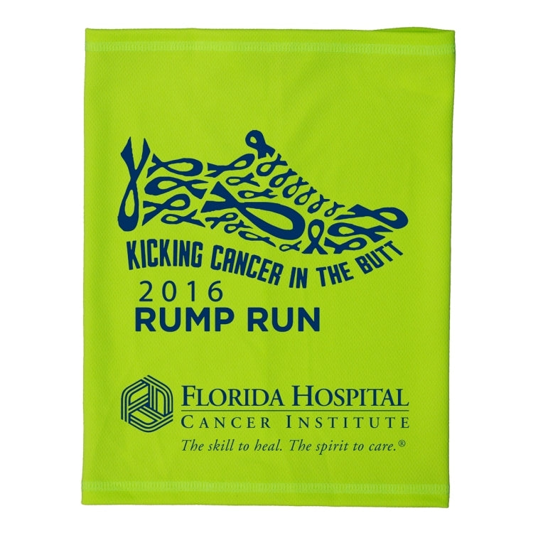 The Full Color Sublimation Cooling Fandana Gaiter keeps you cooler while doing activities indoors or outside in the heat. Simply wet with water and wring to activate (refresh with more water as needed). It remains dry to the touch. Extra thick 170 GSM material is specially constructed and much more comfortable than cotton towels. 100% eco-friendly chemical free microfiber polyester material. One size fits all, hand Wash Prior to Use. Price Includes a full color sublimation imprint on front and back sides.