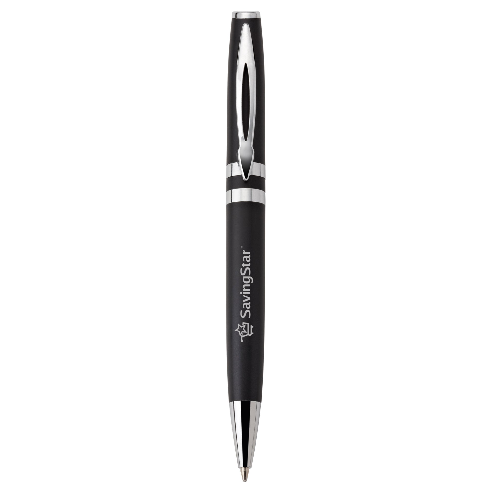 With her fancy chrome rings, tip and clip, and low lead refill, lara is a delight to write with. This twist-action stylish plastic ballpoint pen in her new whimsical color palette, pairs perfectly with our many journals to proudly display your logo.