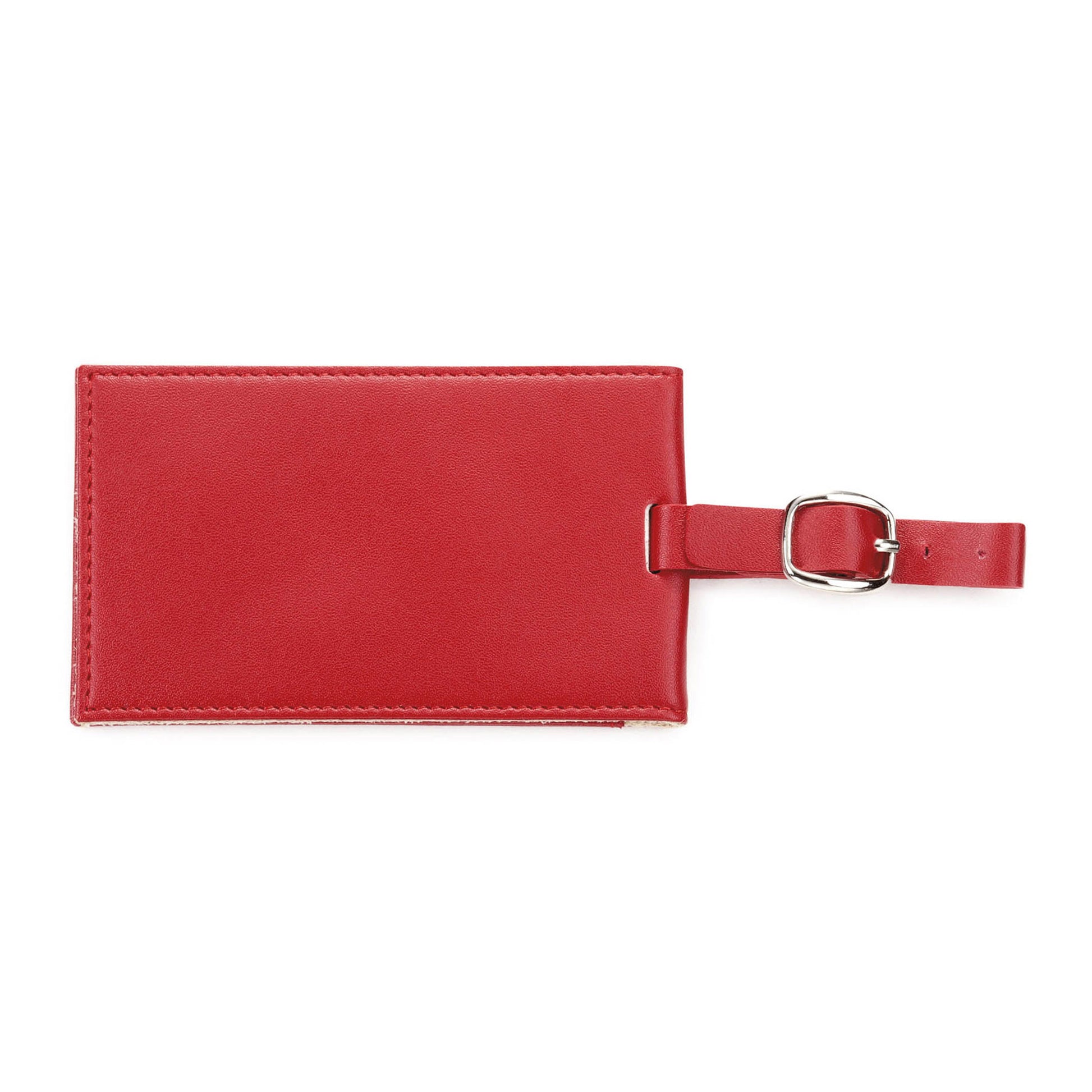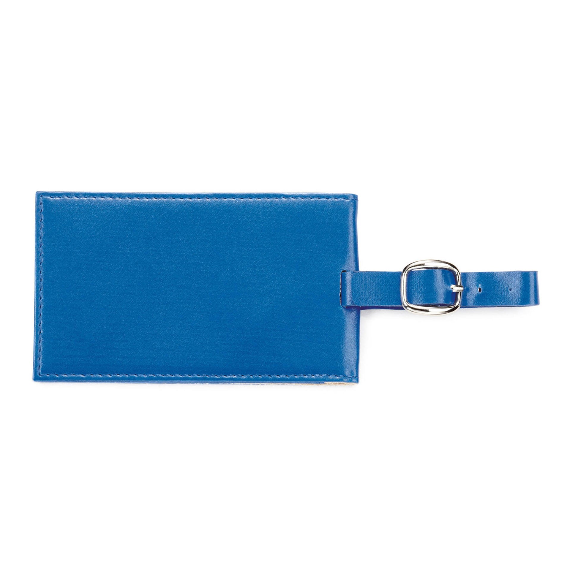 Bonded leather luggage tag with hidden magnetic. Closureholds a standard business card. See details