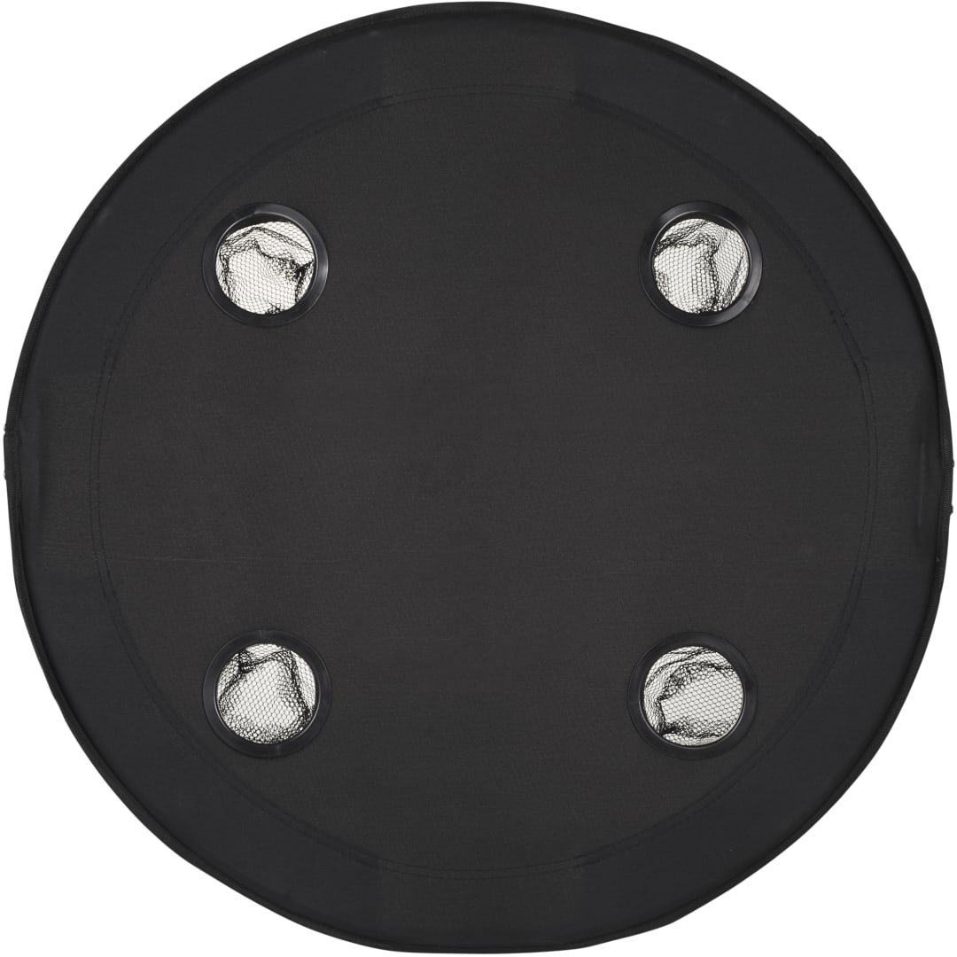 Celebrate your next tailgate or picnic with this folding round table! Or prominently display your logo at a tradeshow or company event while entertaining your guests. The table is light-weight and easy to transport and assemble/disassemble. Features a sturdy steel frame, durable 28.5” diameter 600D table top, and four (4) integrated mesh cup holders. Table-top height is 23.5” off the ground. Some assembly required. Available for one-day turn with Sureship®.