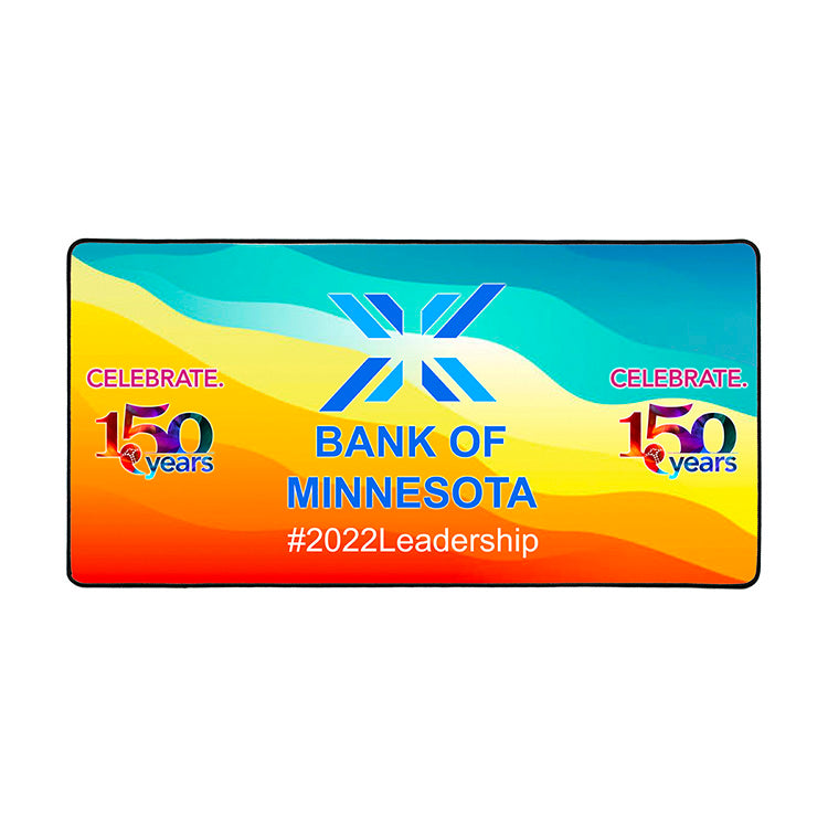Our extra-large 31 ½” W x 15 ½” H non-slip rubber gaming/office pad is large enough to fit multiple electronic peripherals -- gaming console, laptop, keyboard, mouse -- all on one pad. It has a special whip-stitched hemmed black border to avoid fraying, peeling and ripping along the edges. Supports both optical and laser mice. The price includes up to a Full Color Photo Image imprint with one setup charge. Optional Packing: For Gaming Pad inserted into White Gift Tube please add $2.00 (G) and specify TUBE3X18. Repeat order ink colors will vary from order to order. PMS matches can only be close and cannot be matched exactly for digital printing. Claims resulting from printing imperfections only noticeable when magnified or enlarged will not be accepted. Logos/printing must be viewed at arms length by the human eye.Repeat order ink colors will vary from order to order. PMS matches can only be close and cannot be matched exactly for digital printing. Claims resulting from printing imperfections only noticeable when magnified or enlarged will not be accepted. Logos/printing must be viewed at arms length by the human eye.