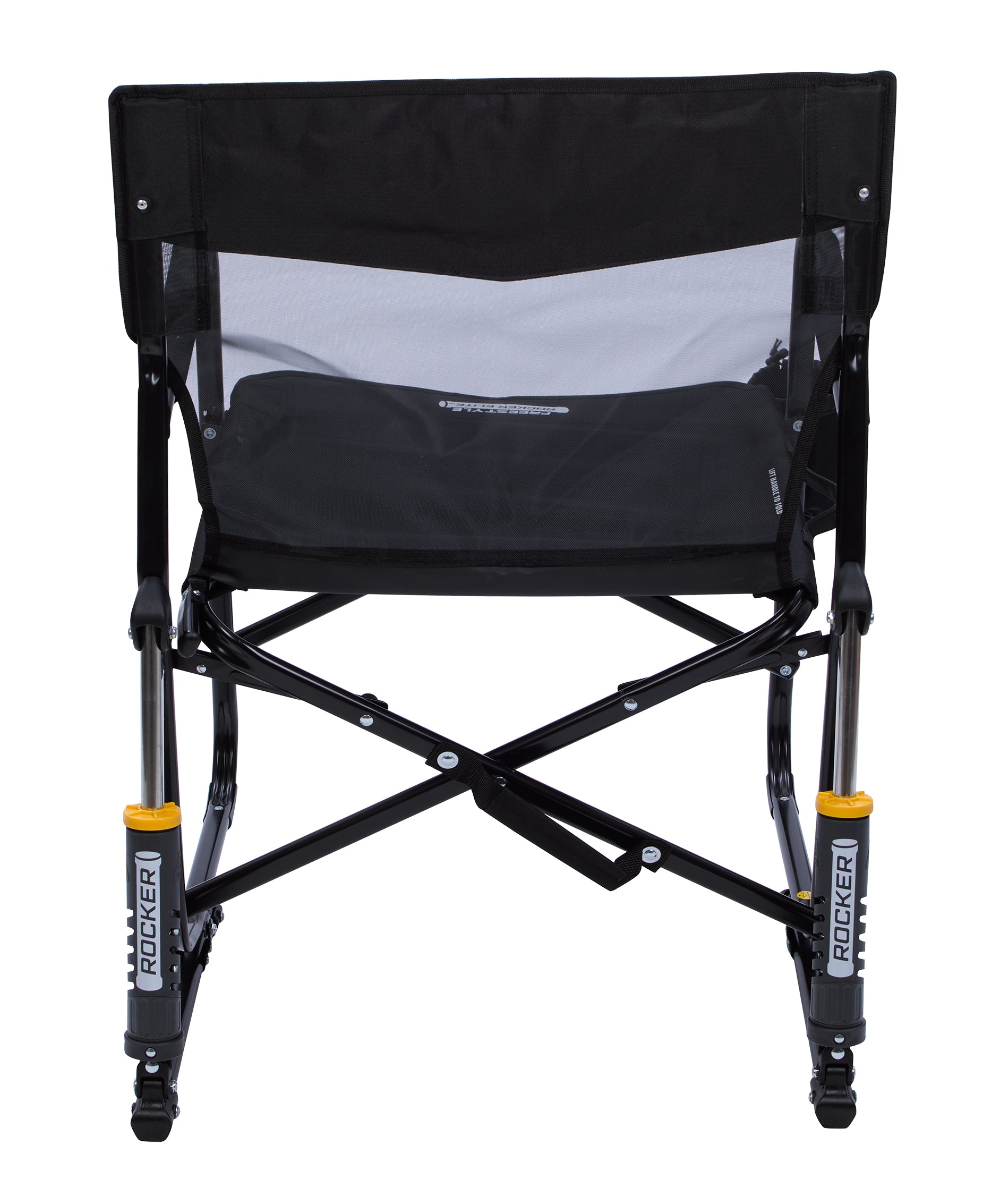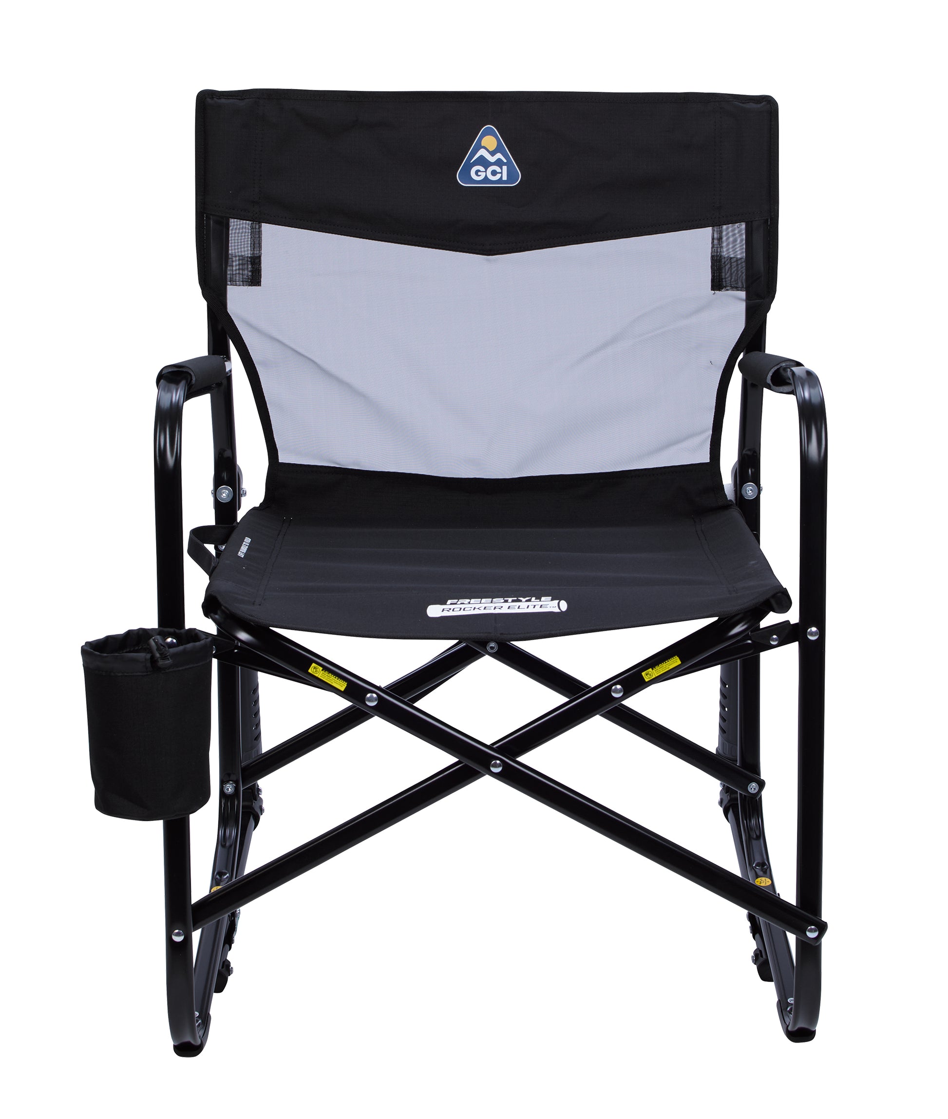 Enjoy smooth rocking motion all day in this chair with GCI Visible Shocks that feature Patented Spring-Action Rocking Technology™. Its infinity comfort edge adds to the comfort, while the breathable seat keeps you cool and relaxed. A drawstring closure drink caddy fits a 34 oz. water bottle, so your beverage is always close at hand. With its built-in handle and Eazy-Fold Technology for quick storage, this chair is the perfect blend of comfort, portability, and practicality for any outdoor setting. GCI Outdoor covers this product with a 3-year limited warranty (excluding imprint). Weight capacity 300 lbs.