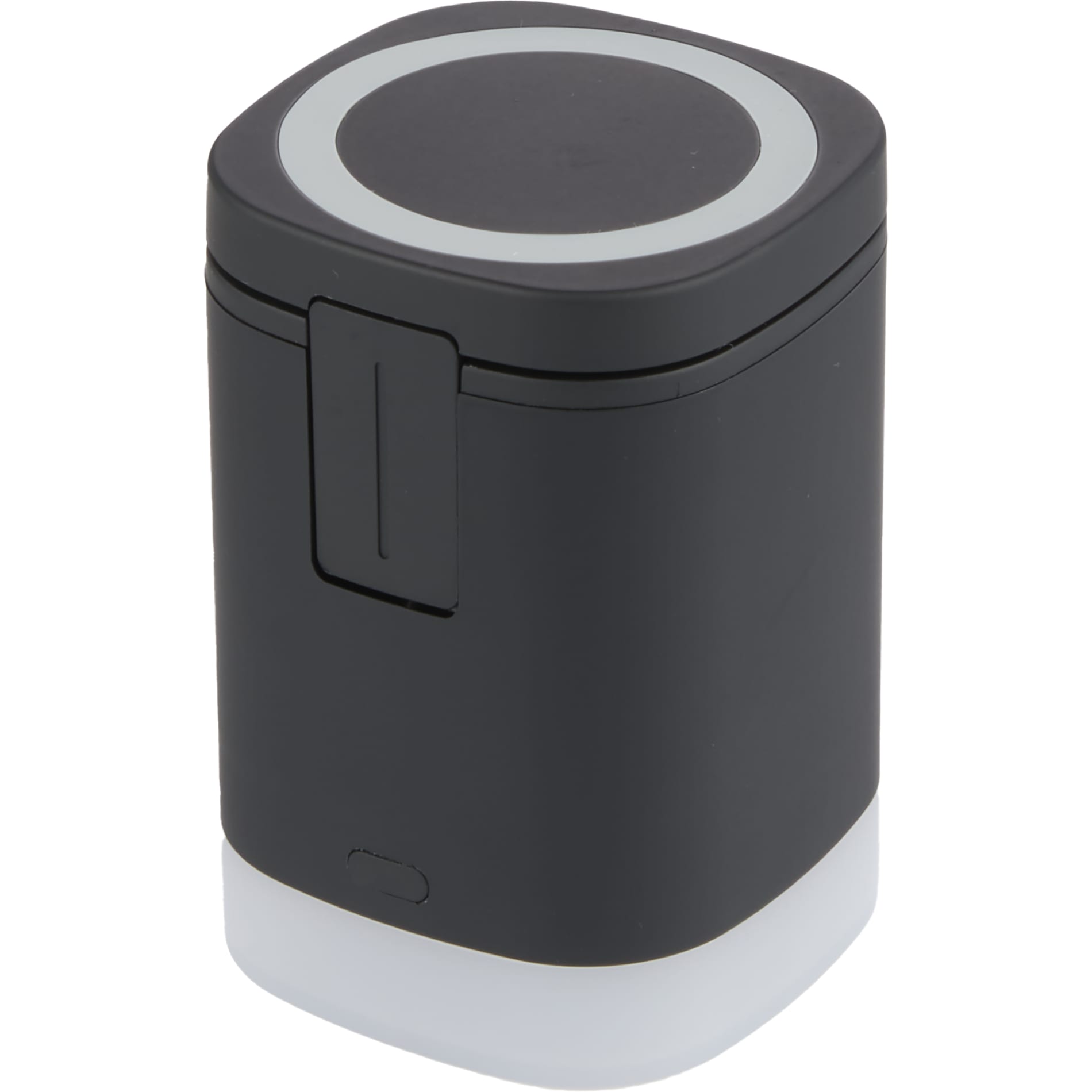 The Glow 3-in-1 15W MagClick™ Wireless Charging Stand is designed with dedicated charging spots for smartphones, Apple Watches and Airpods/Airpod Pros. The front foldable phone stand spot can hold iPhone 12 models and above magnetically for up to 15W wireless charging. The back spot supports wireless charging at up to 5W for any enabled devices, while the Apple Watch stand can be lifted up with 2.5W wireless charging for iWatches. It also features lights that make it glow! Works with most plastic phone/airpods cases on and includes 39-inch Type-C to Type-C cable. It is recommended to use UL or ETL Listed 30W USB-C power adapter for better performance. Packaged in a FSC® certified premium gift box.