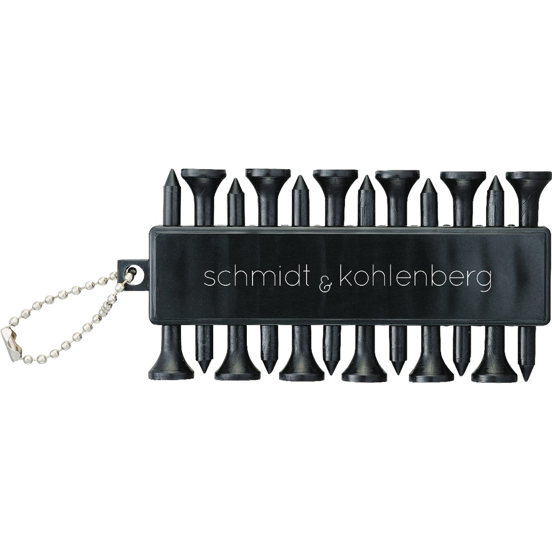 The Golf Buddy features 12 golf ball tees and 3 golf ball markers on a beaded chain.