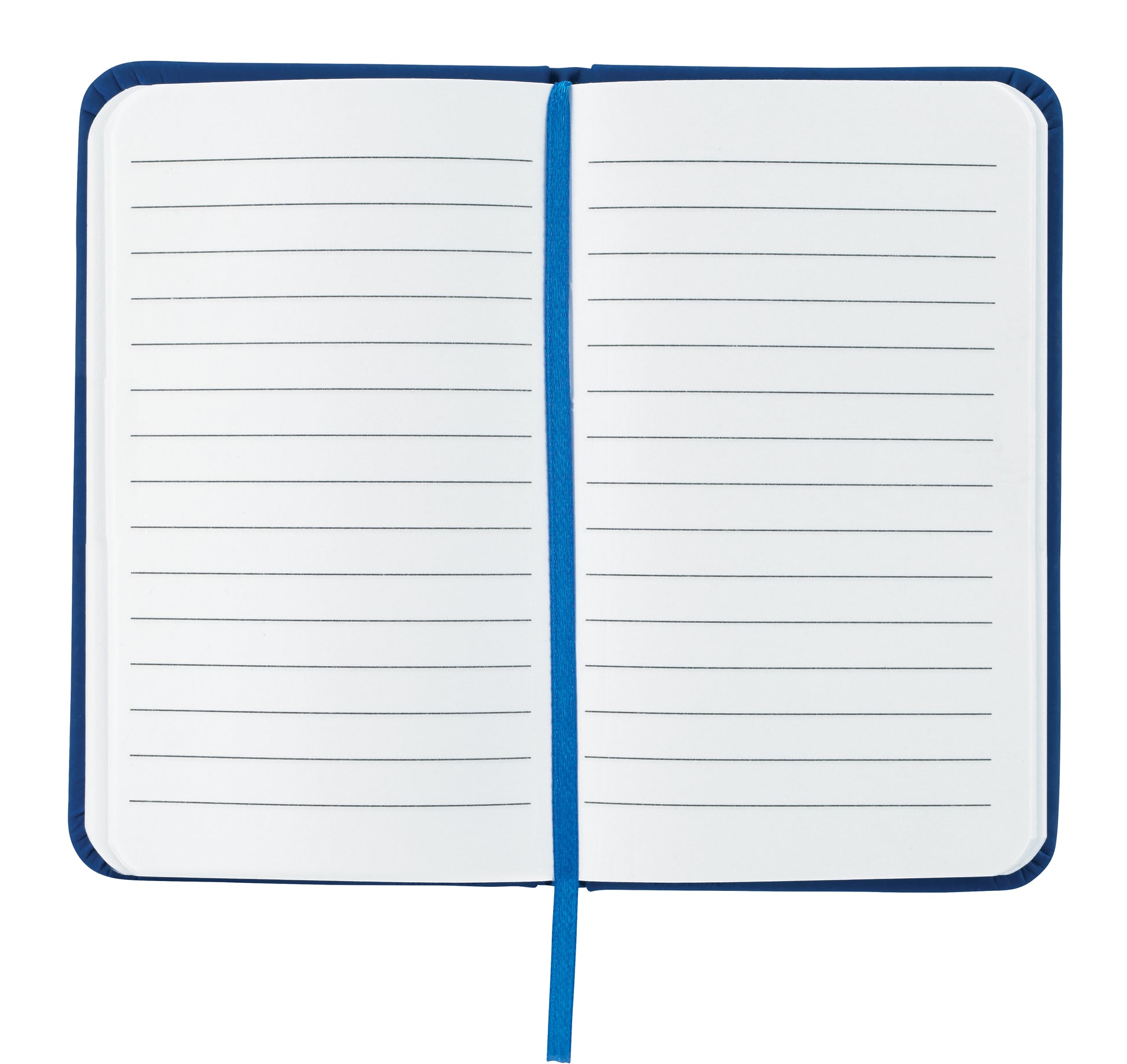 Jot notes or record daily happenings with this compact 3" x 5" journal, featuring a soft leatherette cover. A colored elastic band and ribbon bookmark add an extra touch of style.