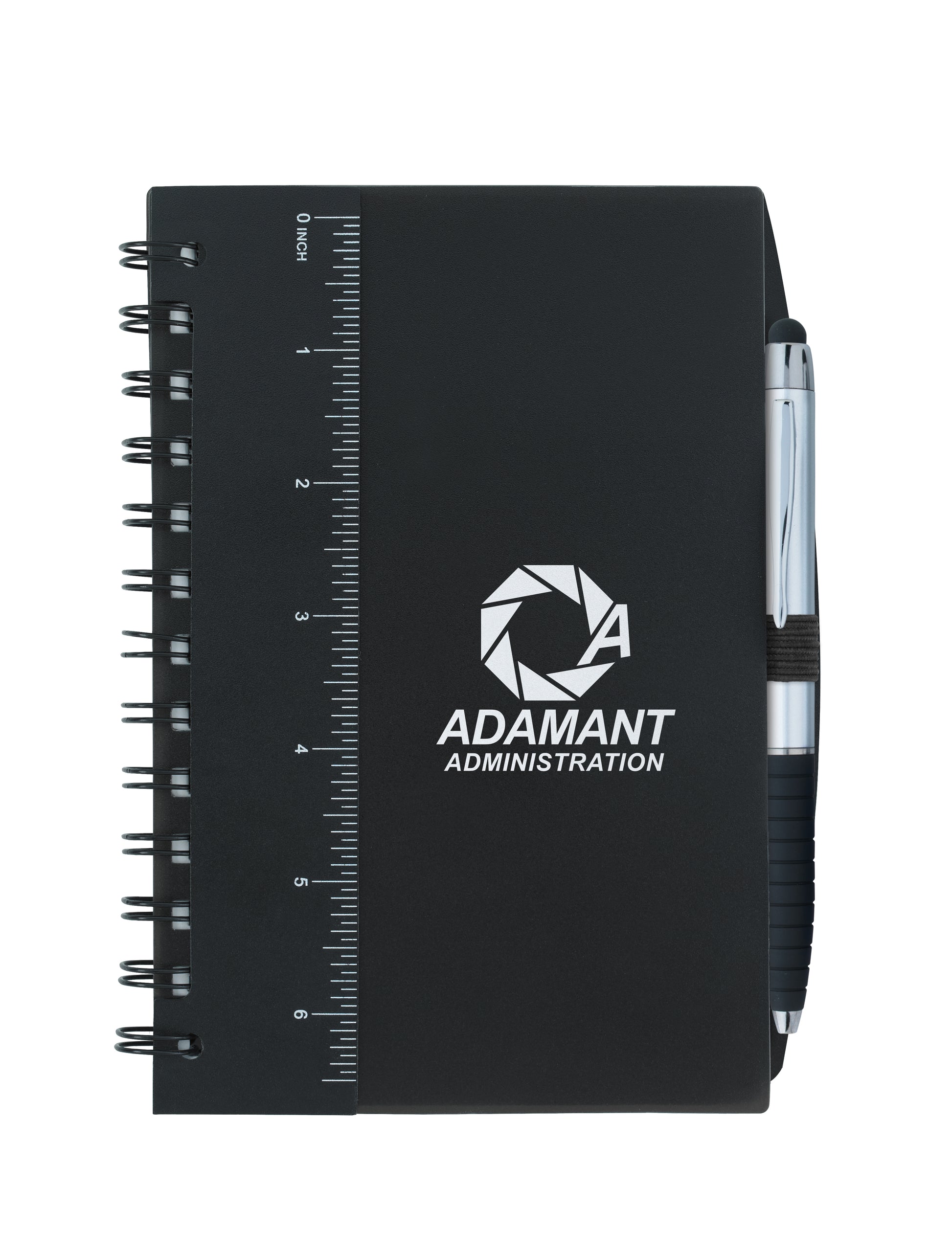 This handy notebook comes decked out with a detachable ruler and Silver Cool Grip Stylus Pen inserted into an elastic pen loop. The compact size makes it the perfect companion at important meetings.
